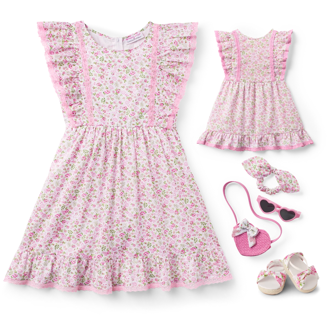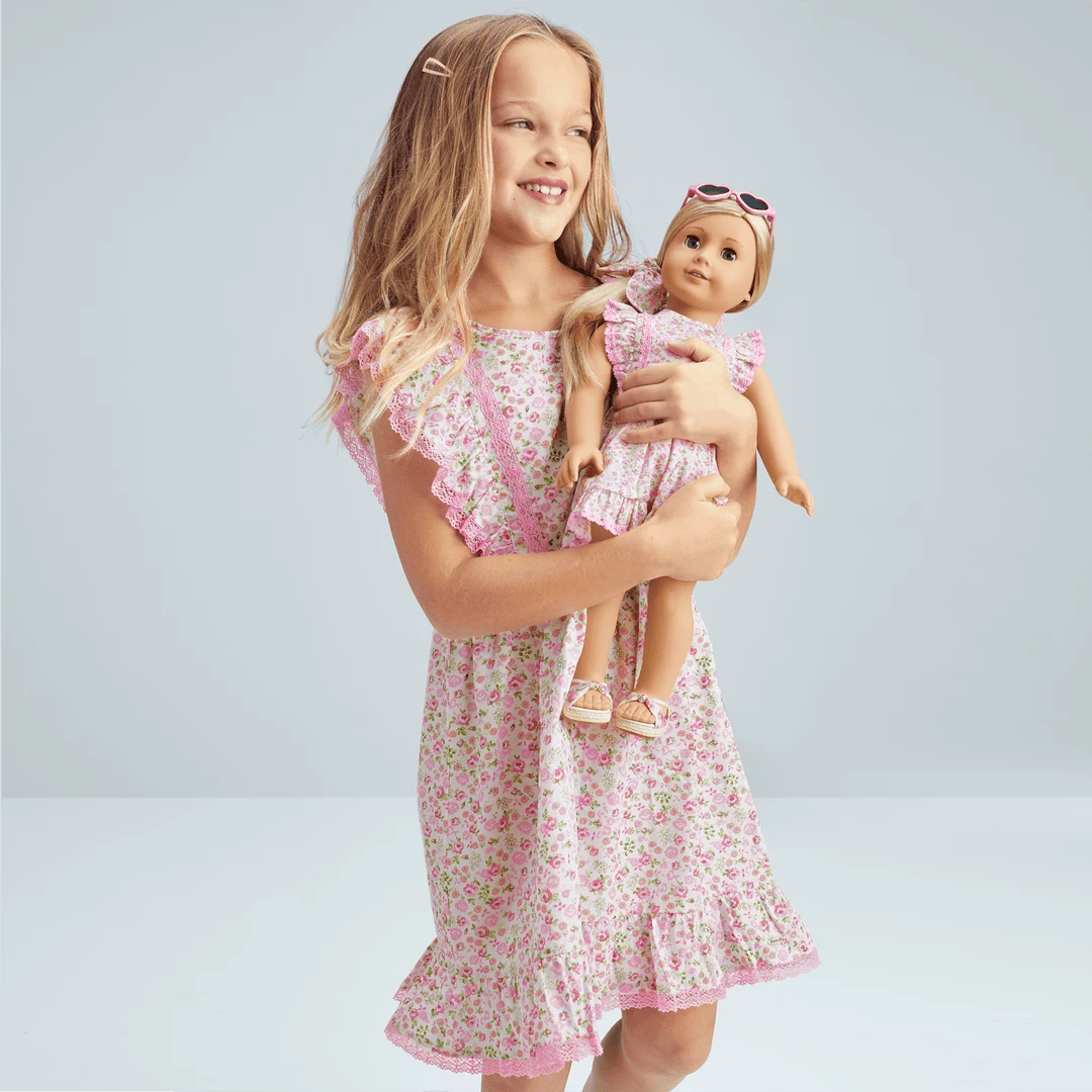 She’ll love dressing to match her doll for spring parties! Designed in collaboration with LoveShackFancy, this set features: