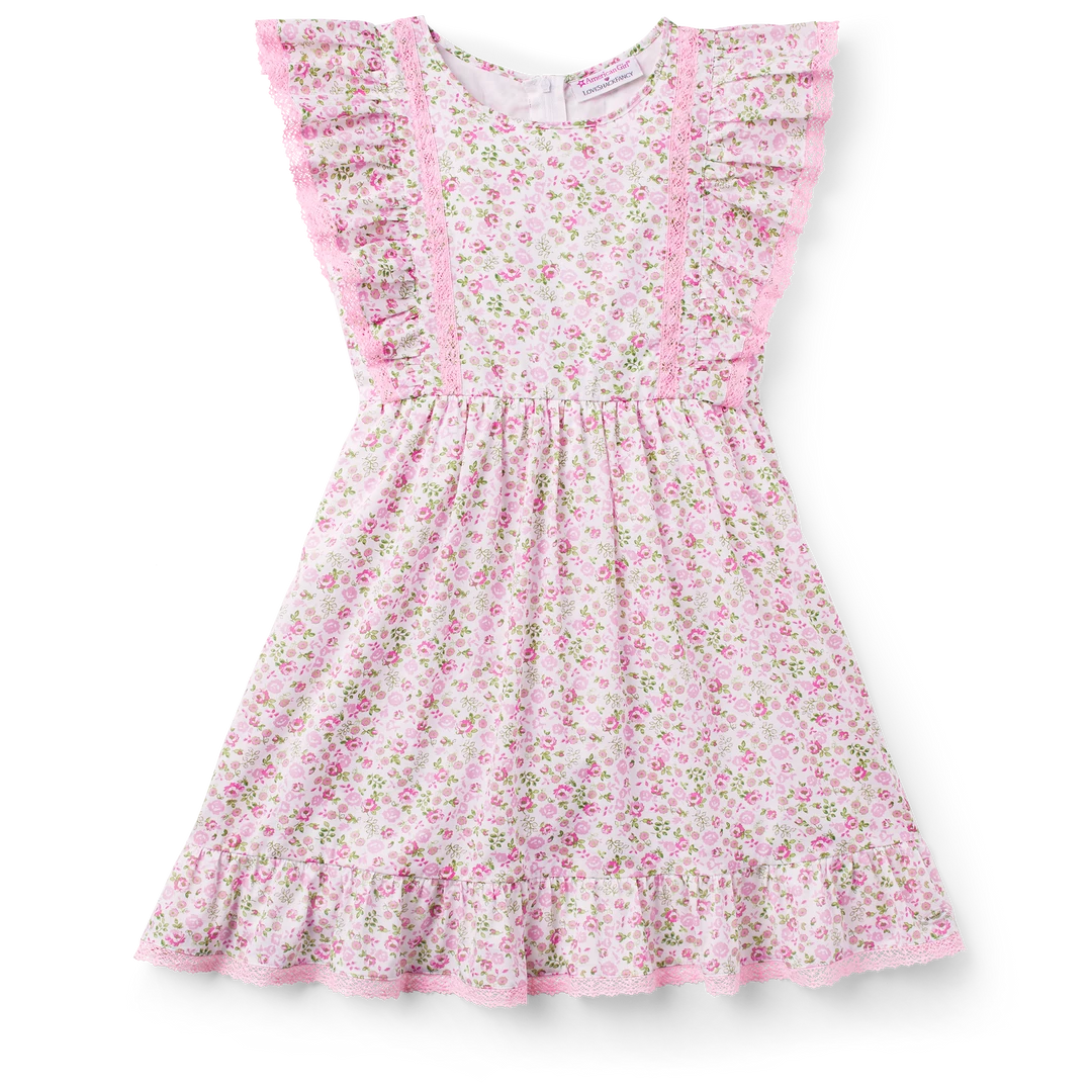 LoveShackFancy Floral Flutter Day Dress for Girls: An above-the-knee, ruffle-sleeve dress in the Aegean Coast print. Features lace trim and a floral bow at the back. Cotton. Imported. Print. Sizes XS-L.