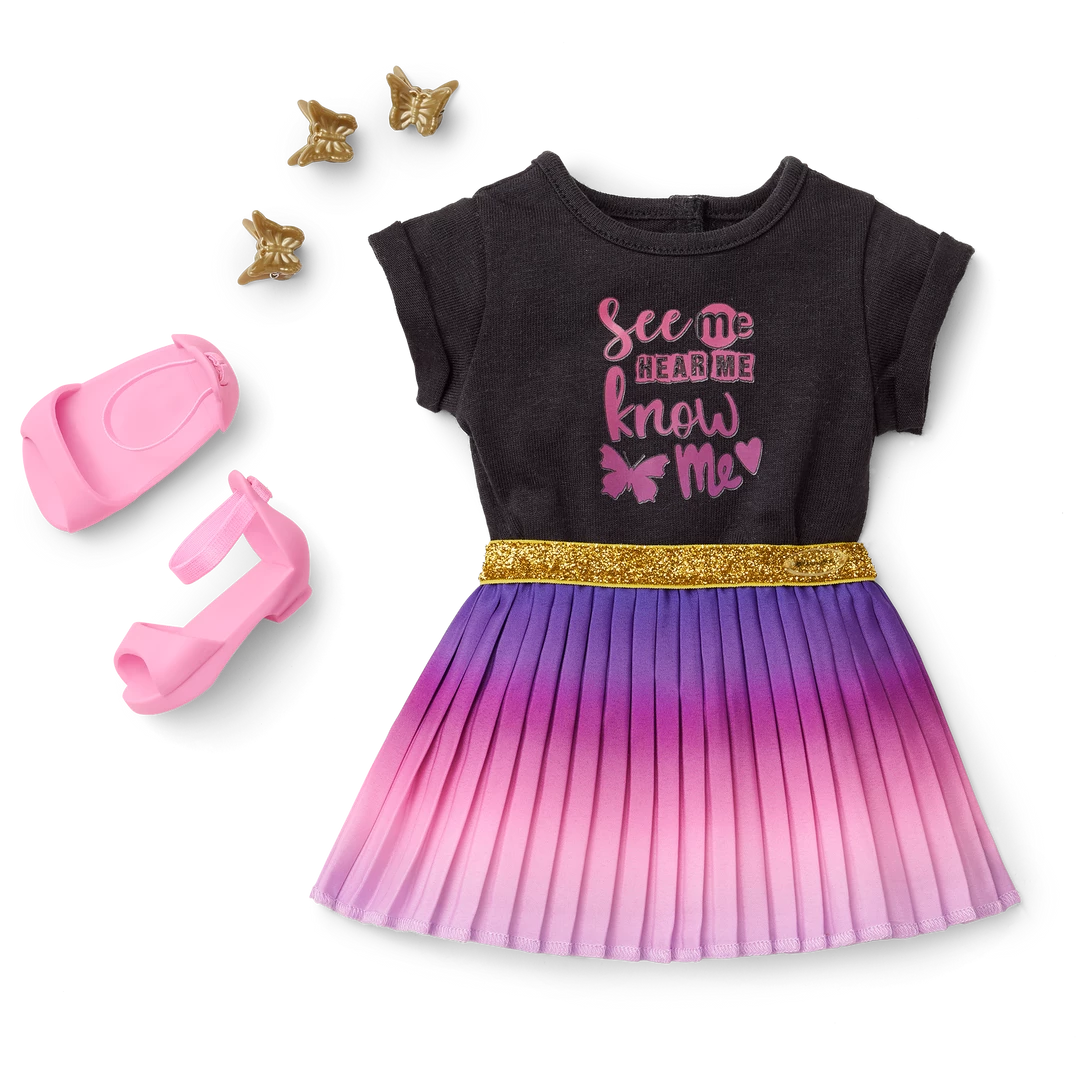 American Girl® x Janie and Jack: Makena’s™ Ombre Skirt for Girls: A purple ombre pleated skirt with a gold elastic-trimmed waistband to give it a little sparkly twist. Polyester chiffon. Imported. Sizes 6-16