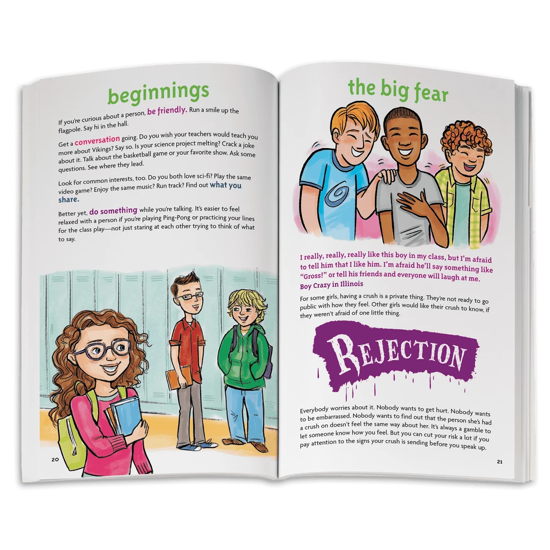 Romance is a part of girls’ everyday lives. They see it in the media and hear about it from their friends and older family members. They may be having feelings they’re not even sure how to define. It’s all very exciting, but also very confusing for girls. This book helps answer all the questions popping up in her head: How can you tell if a person likes you? How do you tell someone you like them? What if you haven’t had a crush yet? And, ugh, what about rejection? It includes tips and quizzes, plus age-appropriate and honest advice on navigating social situations and, most importantly, staying true to herself through any relationship. 112 pages. Paperback. Author: Nancy Holyoke.