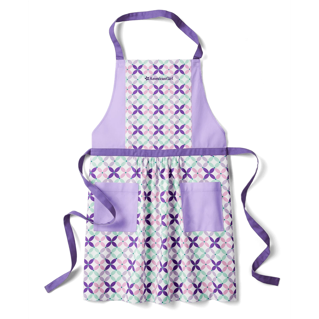 Ready, set, prep. Cook up something special together in a twill print apron that matches your girl’s. It gathers in the front and has purple ties at the neck and waist. Cotton. Imported. Print. One size.