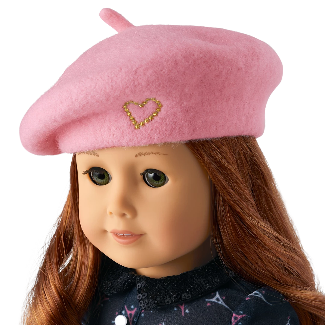 - A pretty pink felted beret with an embroidered heart for that extra “ooh, la, la”