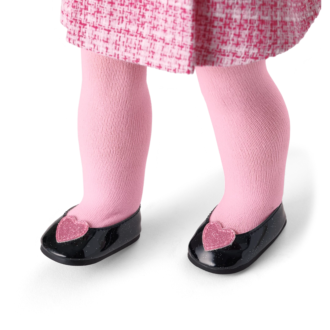 - A pair of shiny black shoes with sparkly pink hearts on the toes
