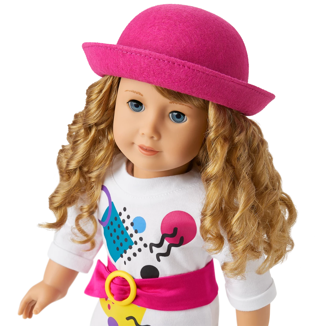 - A hot pink felt porkpie-style hat with a turned-up brim