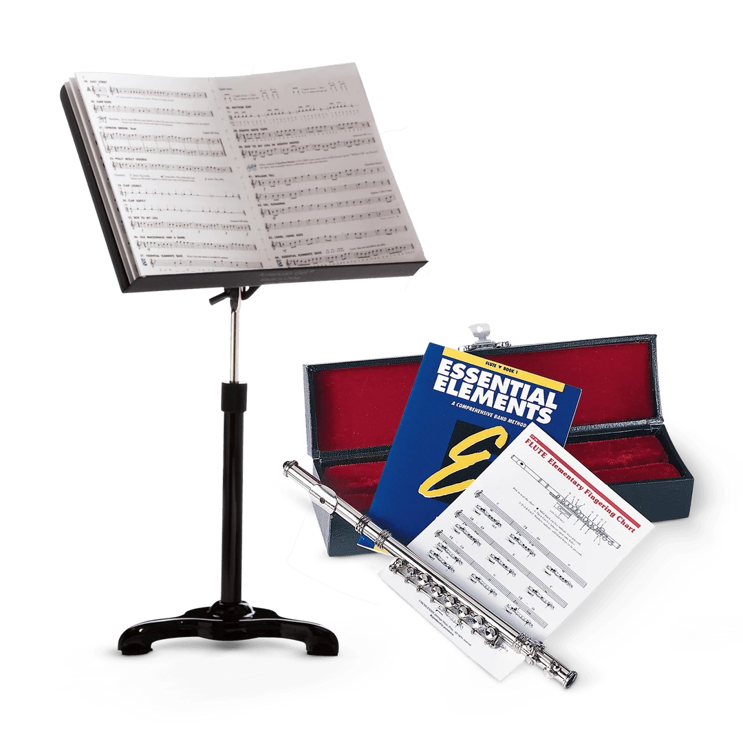 - A metal stand, a fingering chart, and an Essential Elements of Flute book