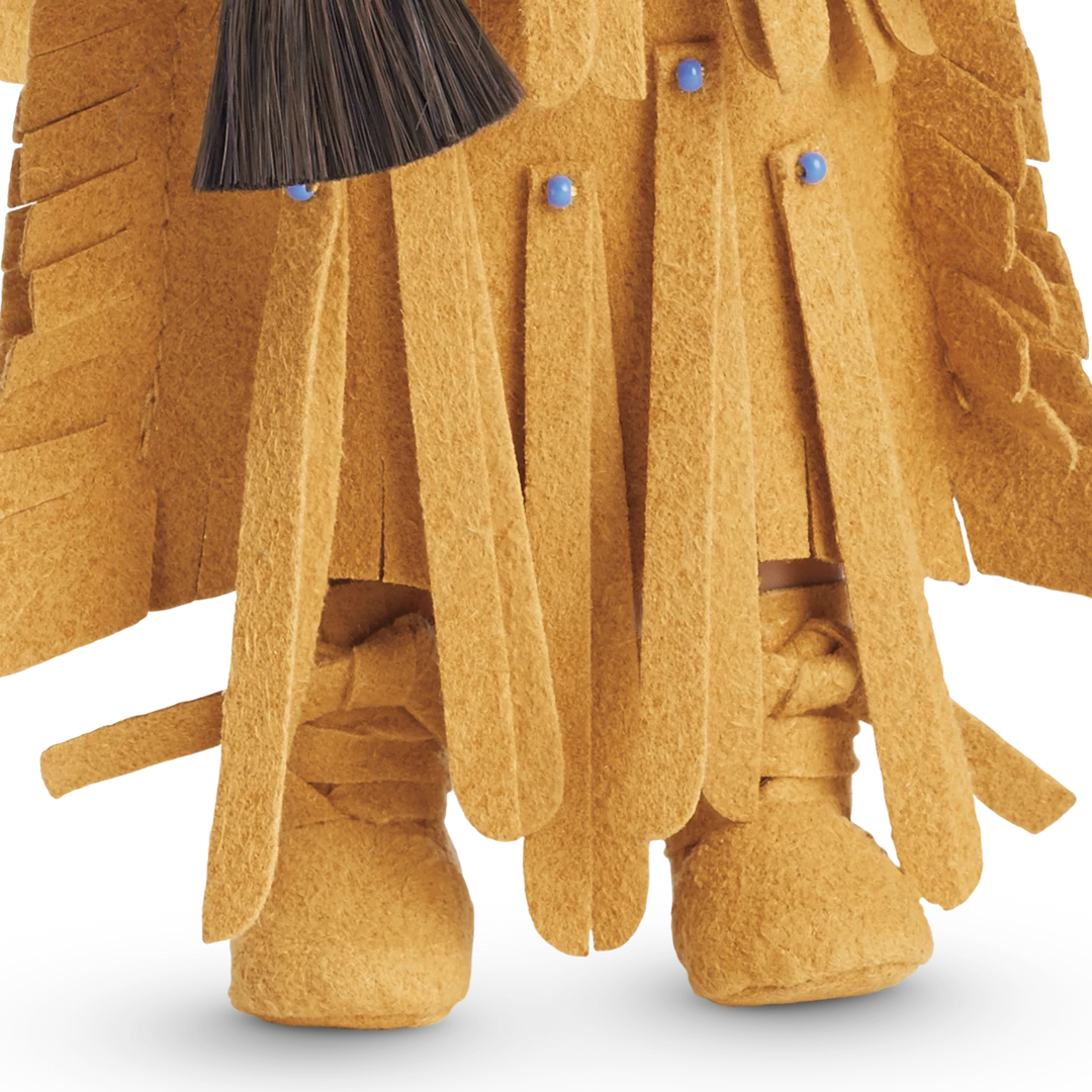 The 6.5″ (16.5 cm) Kaya mini doll has deep brown painted eyes and shiny black braids. Her smooth vinyl limbs are posable. She arrives in a tiny version of Kaya’s authentic 1764 Nez Perce outfit featuring a soft faux-deerskin dress. Includes a mini abridged version of the book The Journey Begins.