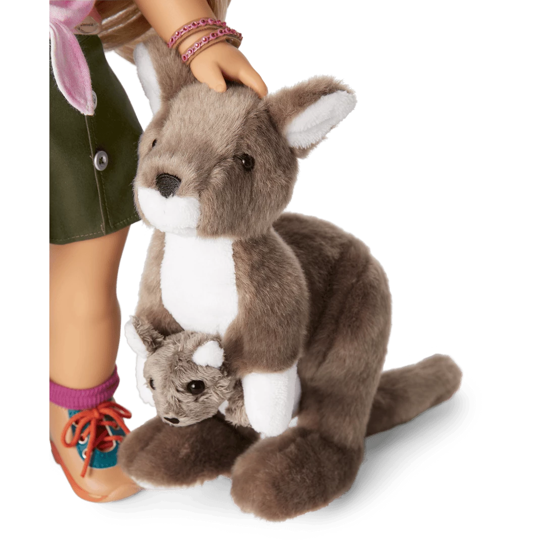 This plush kangaroo has a pouch that holds a plush joey—another name for a baby kangaroo—just like the ones Kira helps care for at the animal sanctuary.