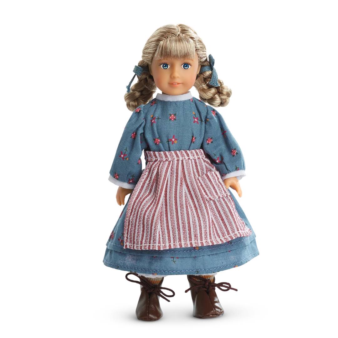 The 6.5″ (16.5 cm) Kirsten™ mini doll has blue painted eyes and braided blond hair. Her smooth vinyl limbs are posable. For a limited time, she arrives in a tiny version of Kirsten’s authentic 1854 outfit. Includes a mini abridged version of the book Meet Kirsten.