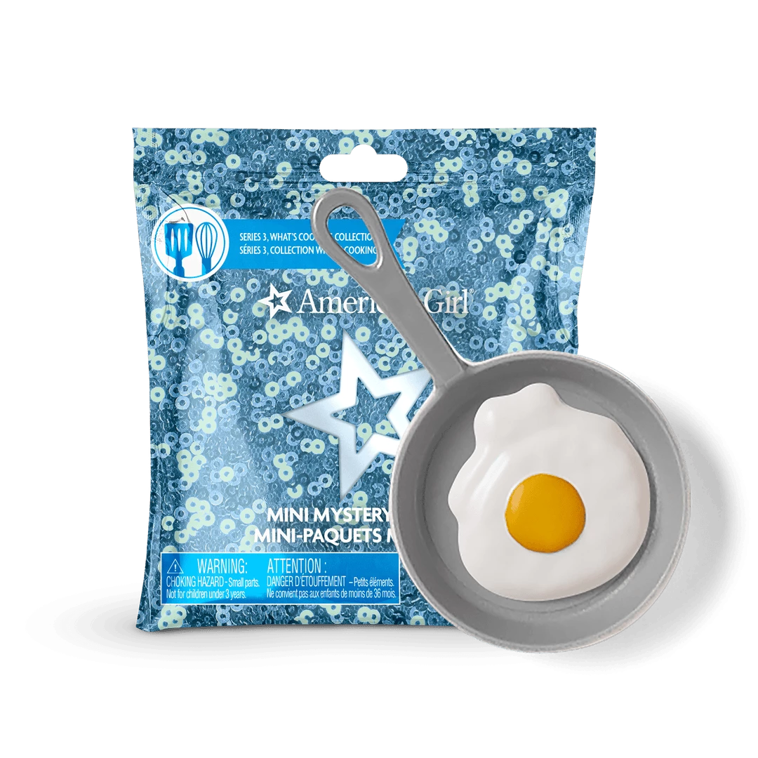 American Girl® Mini Mystery Packs: What’s Cooking Collection: She can open the blind pack to reveal one of ten doll-sized pretend kitchen supplies.