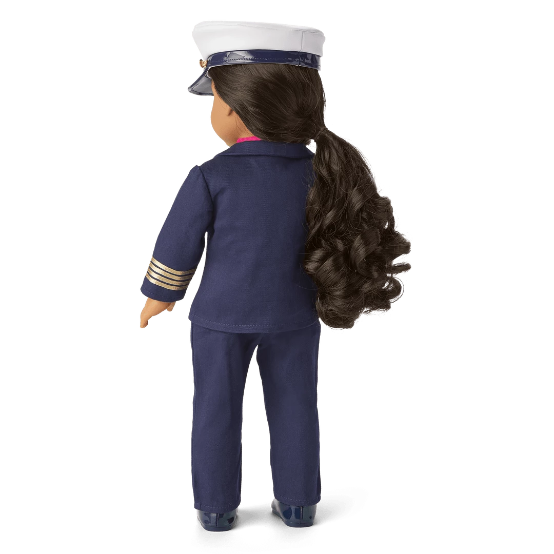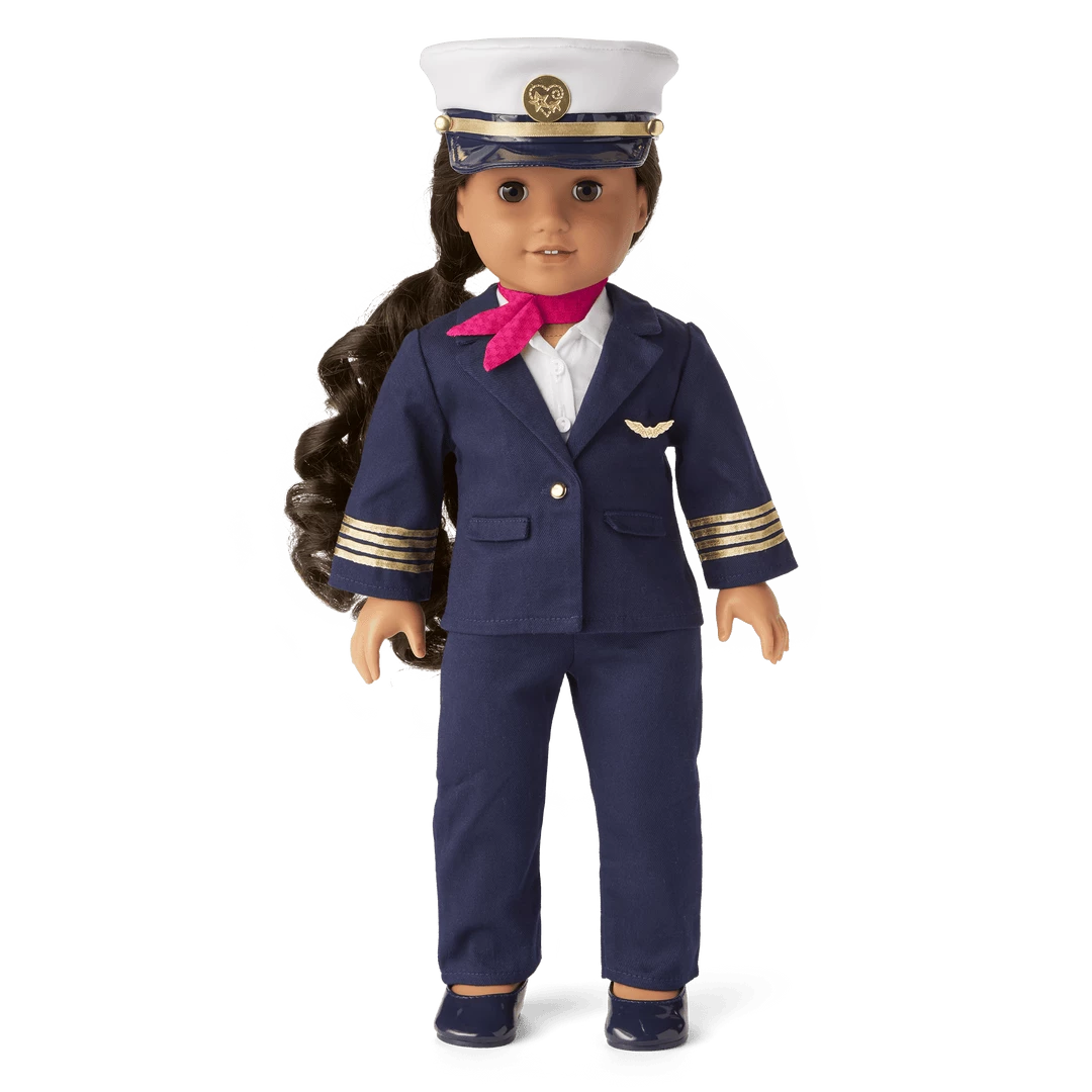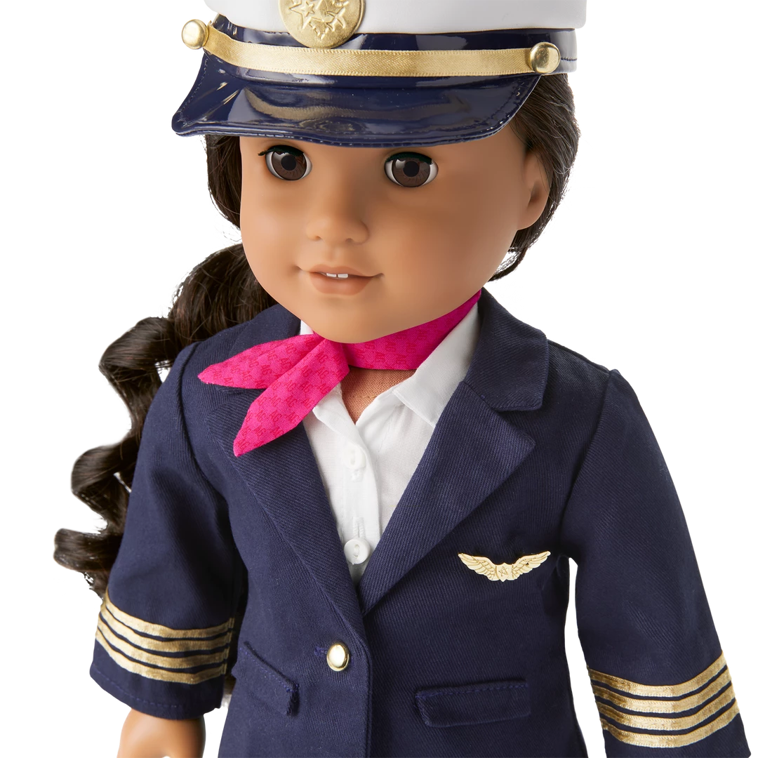 - A pilot’s hat with an American Girl Air Lines logo, gold trim, and a navy brim