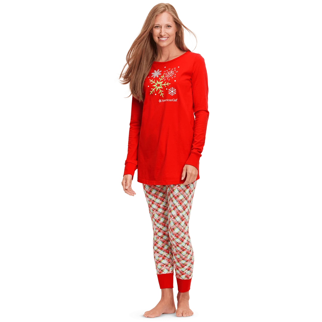 These festive snowflake pajama pants match your girl’s and are perfect for taking a matching family photo! Includes a pair of cozy jersey leggings with a plaid and snowflake print. Cotton/spandex. Imported. Multi. Sizes S-XL