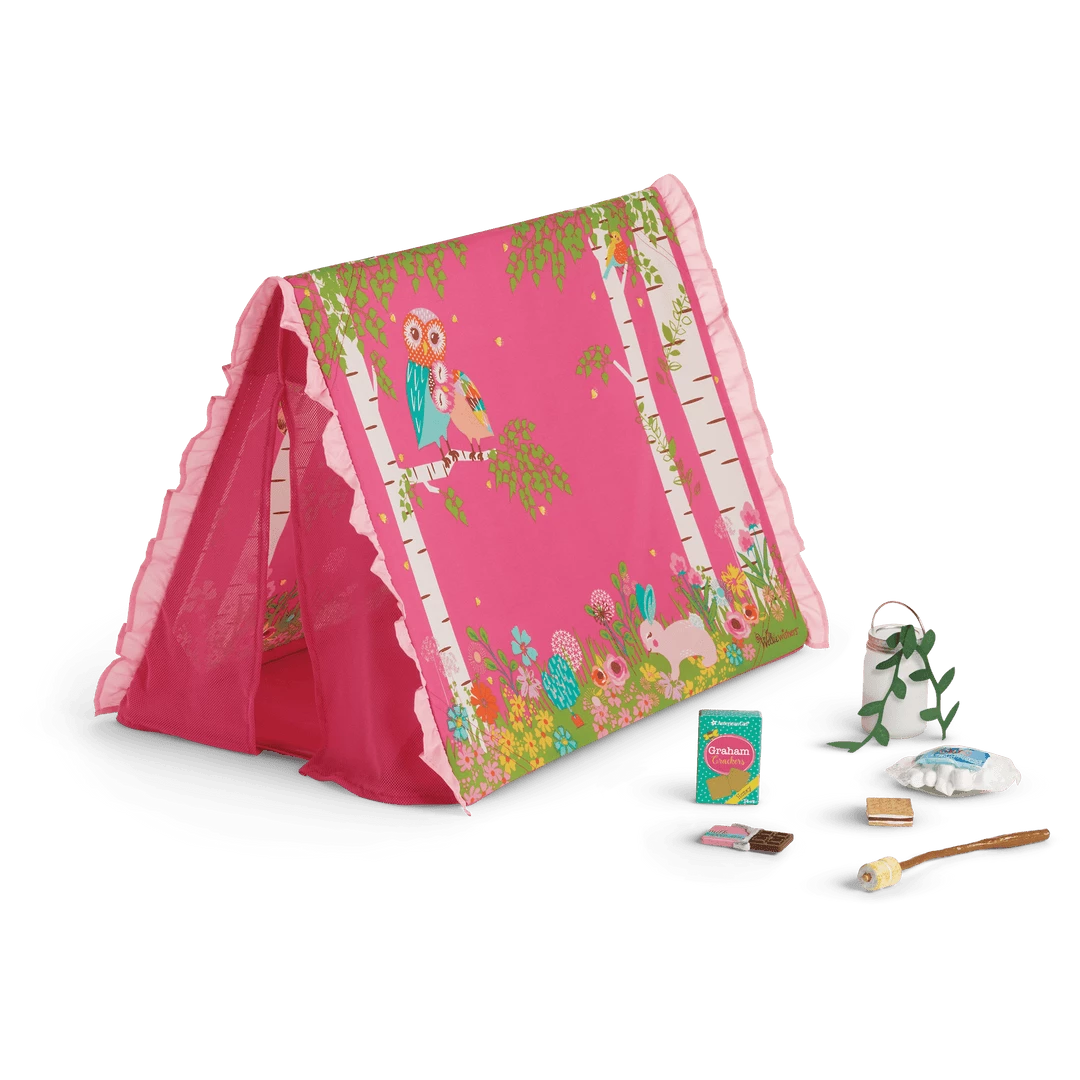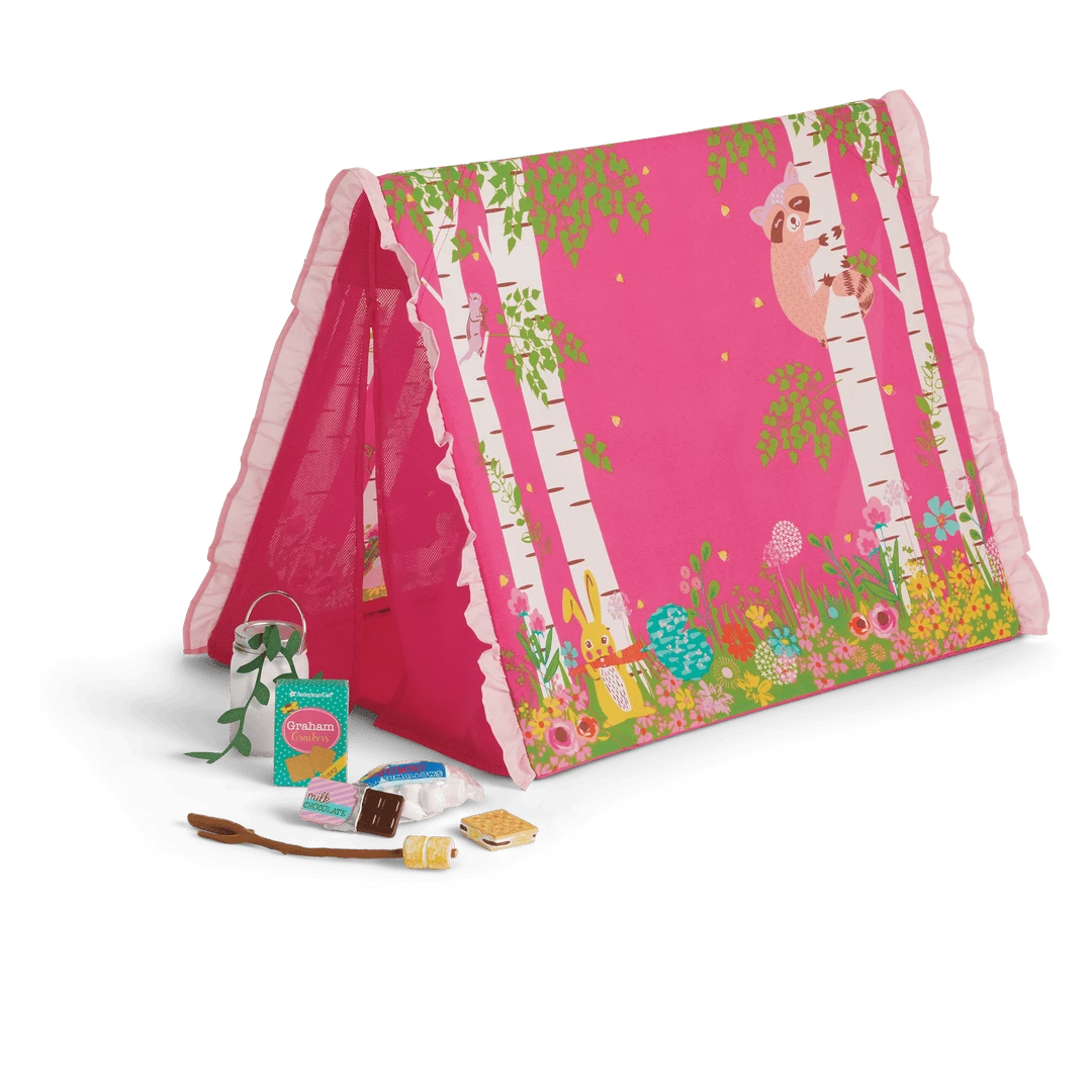 When the sun sets, the WellieWishers gather in this nighttime hideaway imagining that they’re deep in the woods—and naturally, pretend camping is sweeter with the fixings for campfire treats. This set includes: