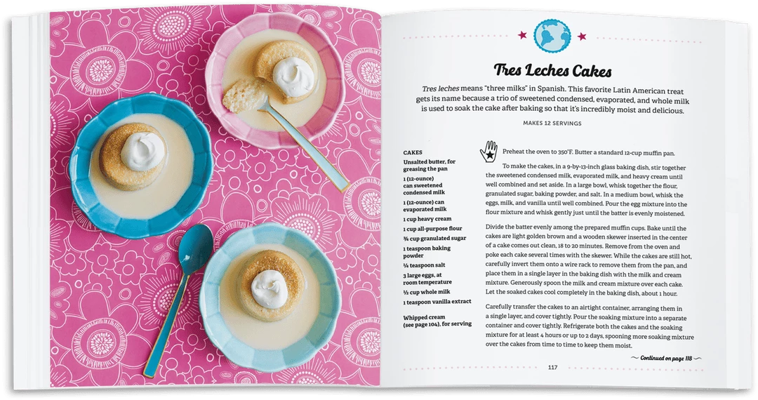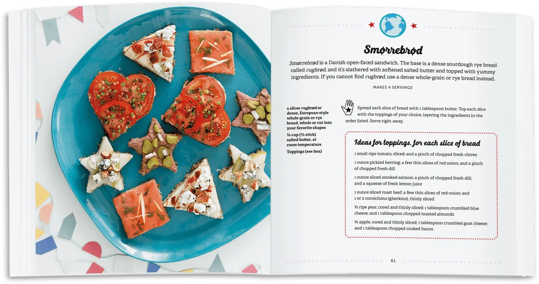 The easy-to-follow recipes are organized by type and span the globe—from France to Brazil, Turkey to Argentina, Italy to India and beyond—giving kid cooks an opportunity to learn how people eat all over the world. An illustrated map with flags, colorful illustrations featuring passports, and party ideas for sharing these worldly recipes with friends round out the collection.
