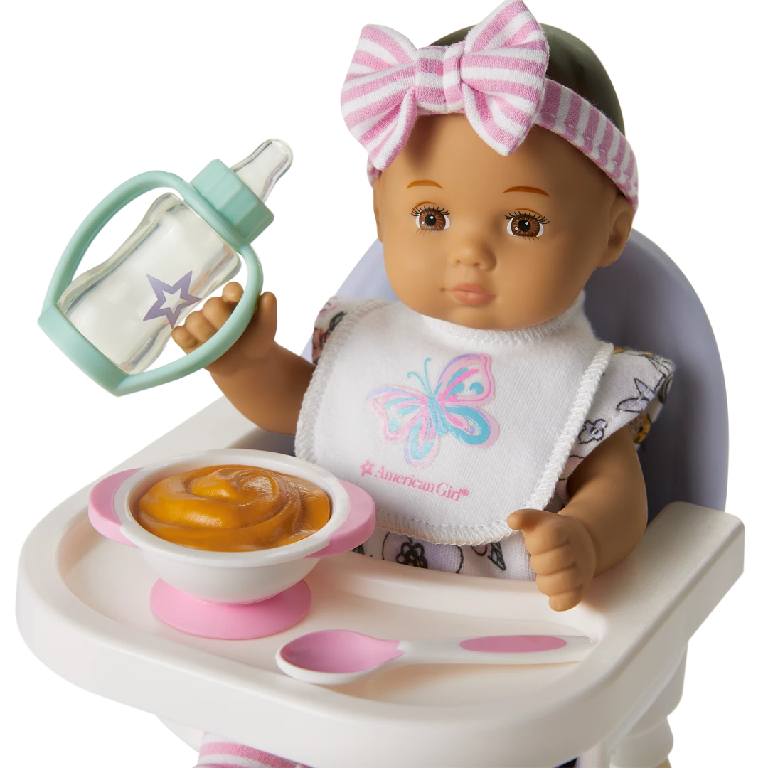 - A bottle with handles that can be held by the baby doll or an 18-inch doll