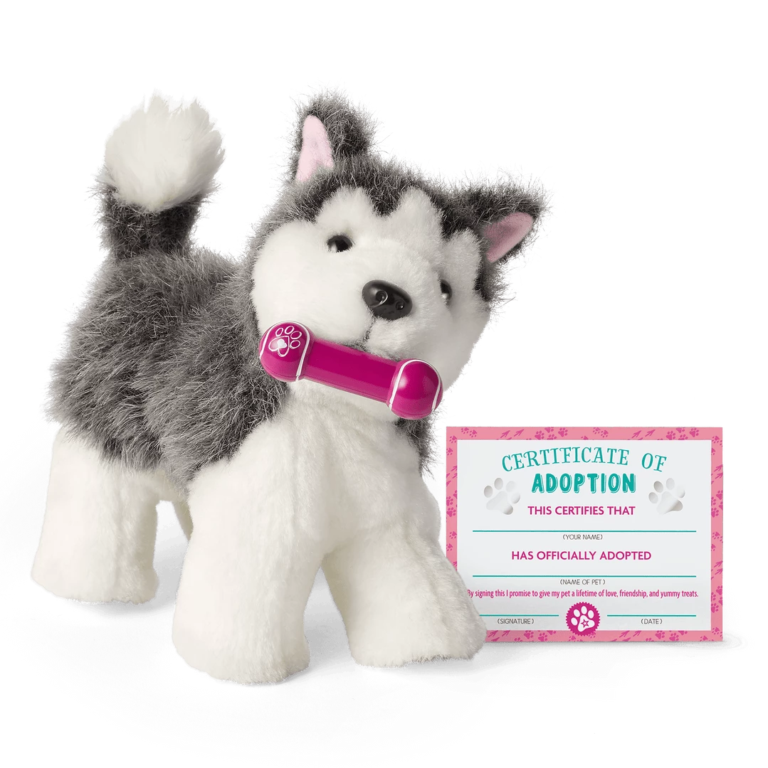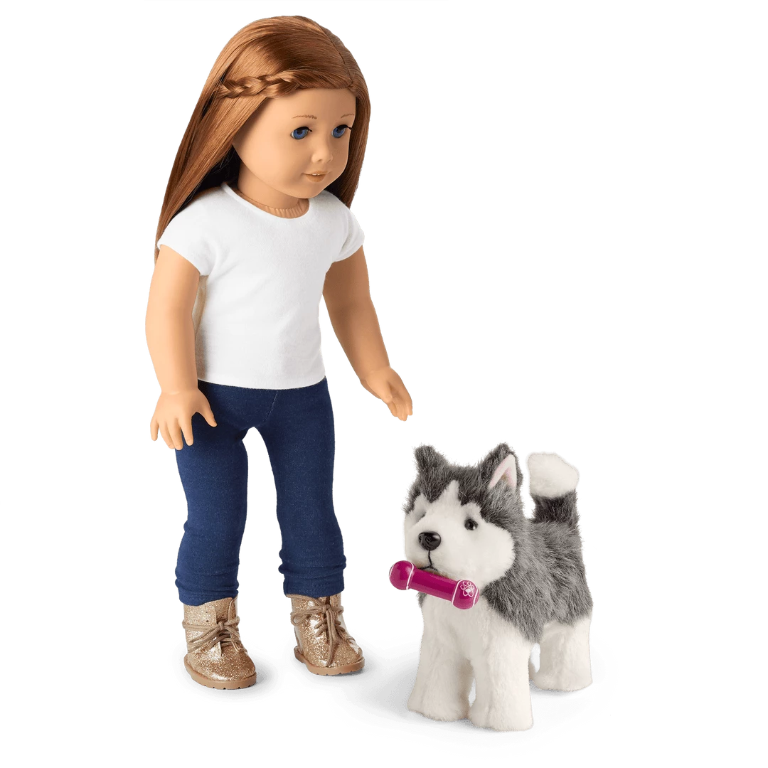 Every Truly Me™ doll loves a playful pet—and this Husky puppy is just waiting to find the perfect home. She has soft fur and a body that can be posed in different positions. A magnet in her mouth lets her hold a favorite toy. Includes a printed paper adoption certificate.