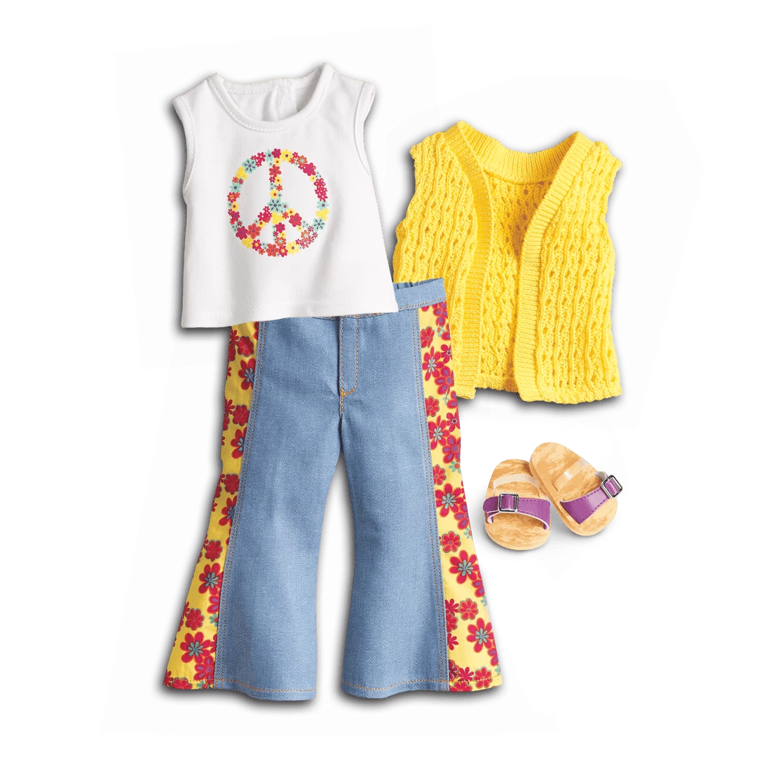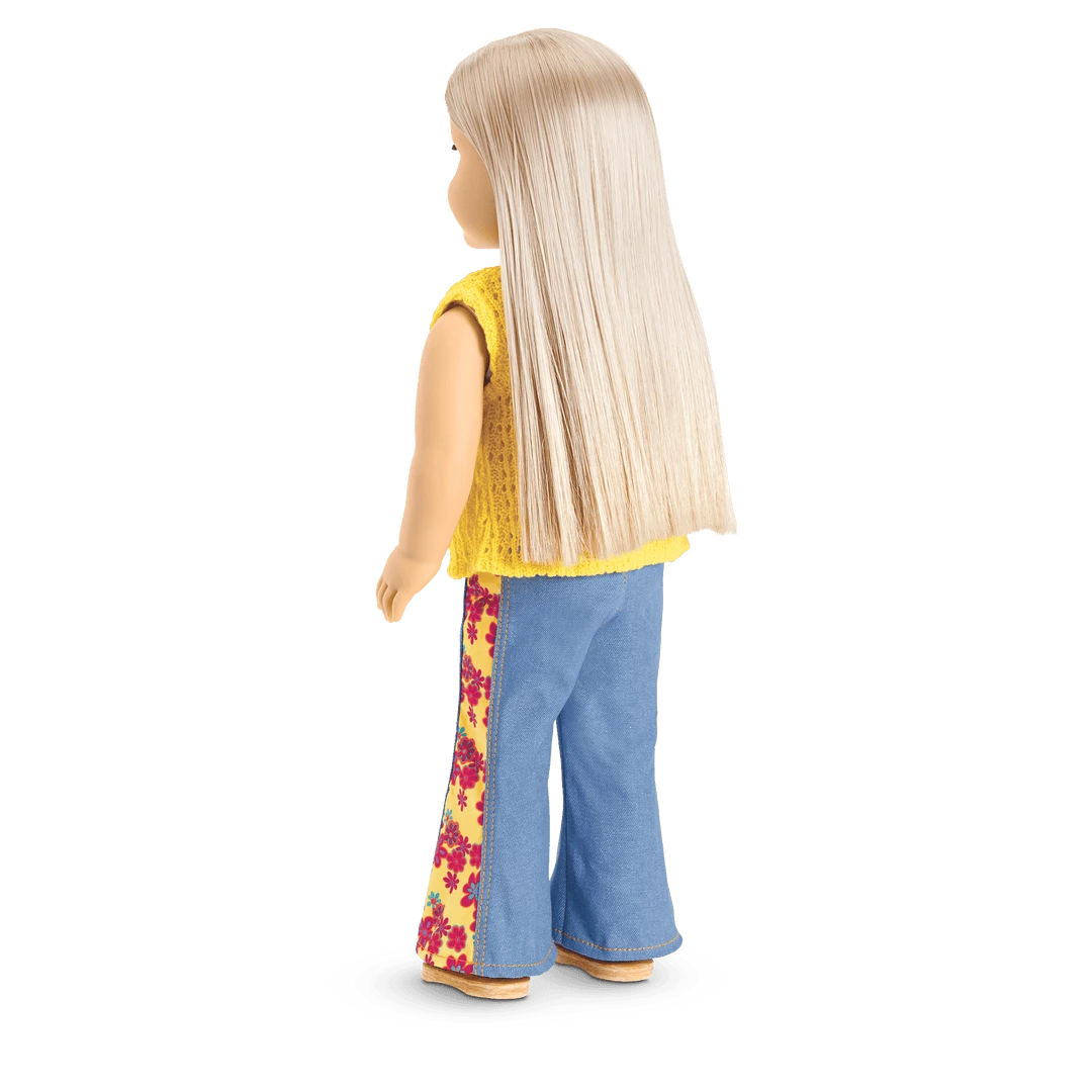 Optimistic Julie Albright™ has warm, lifelike brown eyes that open and close smoothly, and realistic long, straight blonde hair styled with a tiny braid at the side. She comes in an authentic 1970s-style outfit:
