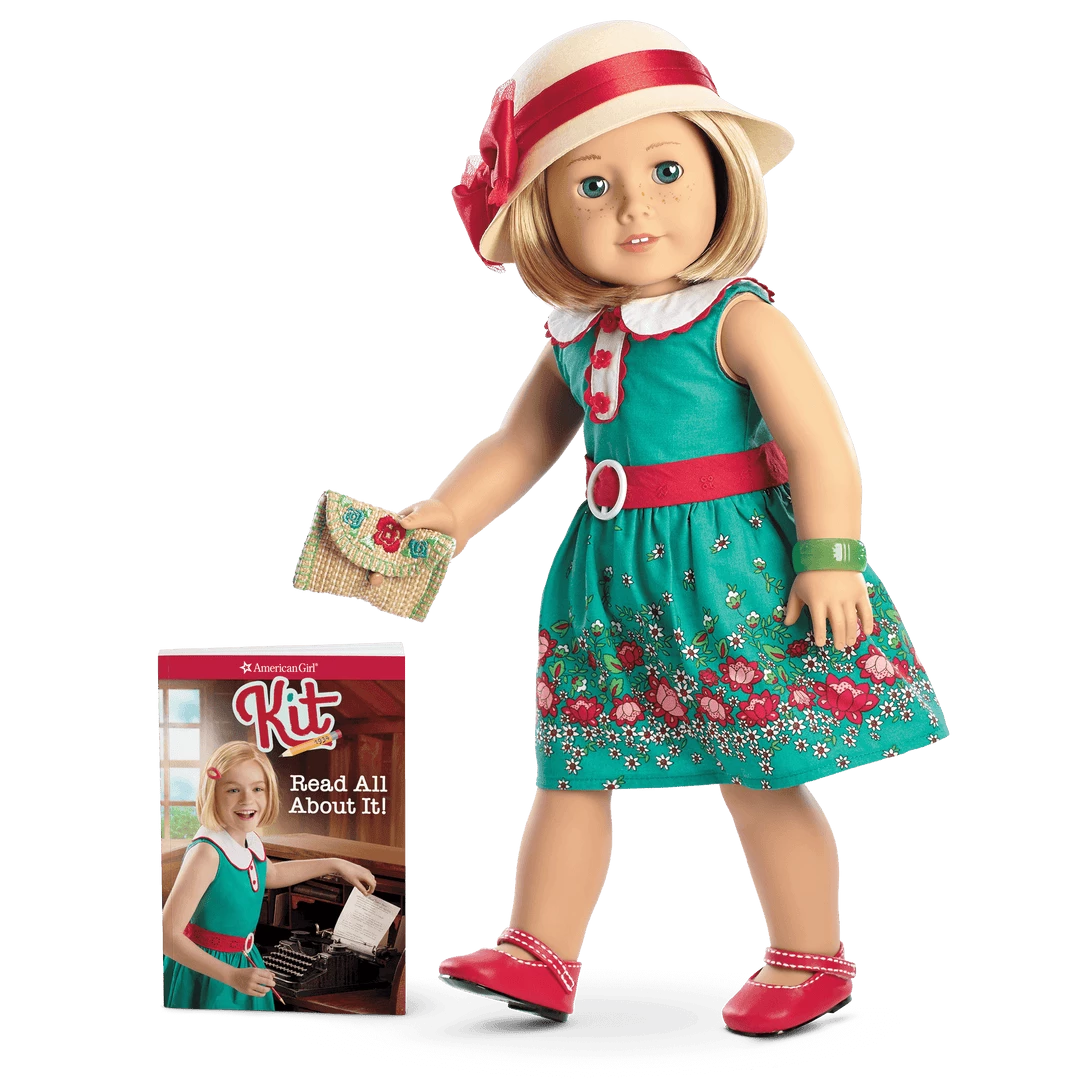 Clever Kit Kittredge™ has brilliant blue eyes that open and close, a neat blonde bob, and a sprinkling of freckles across her nose. She comes in an authentic 1930s outfit: