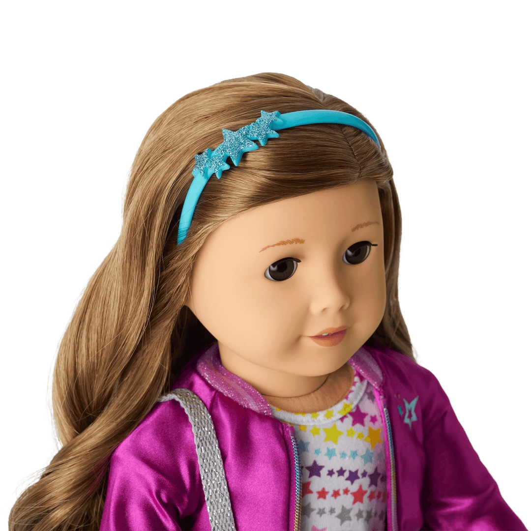 - A blue headband with a cluster of glittery stars