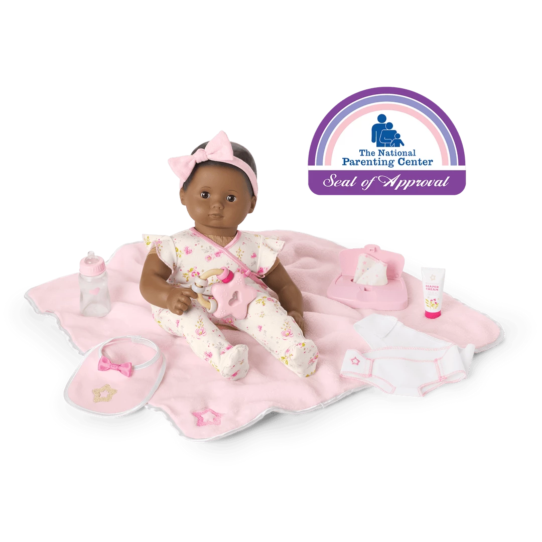 Get your little one ready for a full day of caring for Bitty Baby®—from changing Baby’s diaper to changing her outfit after feeding time to rocking her to sleep again. It includes: