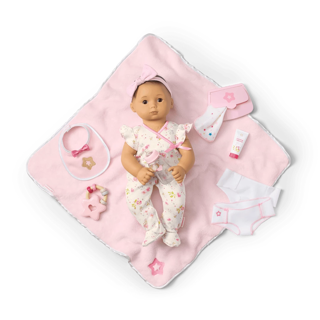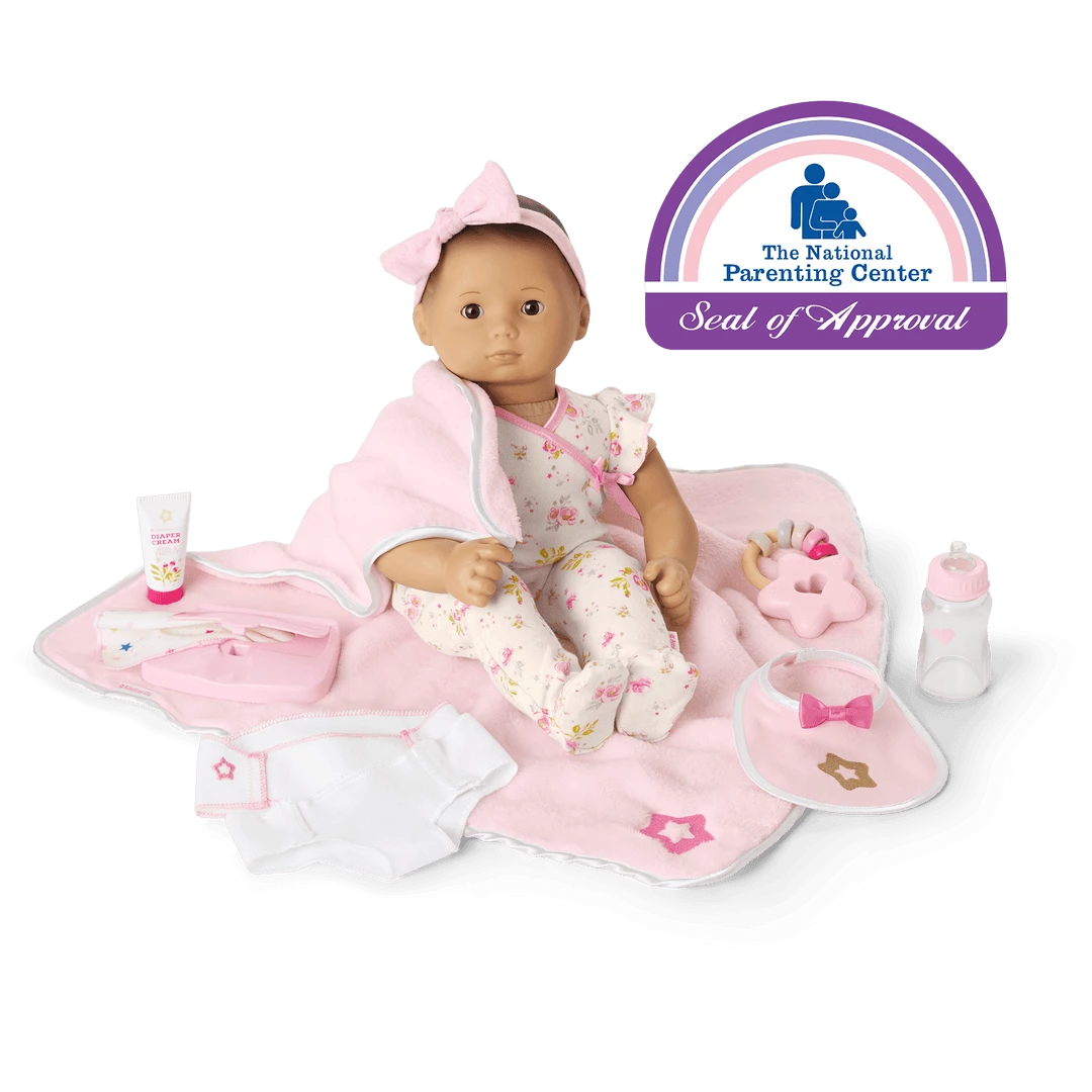 Get your little one ready for a full day of caring for Bitty Baby®—from changing Baby’s diaper to changing her outfit after feeding time to rocking her to sleep again. It includes: