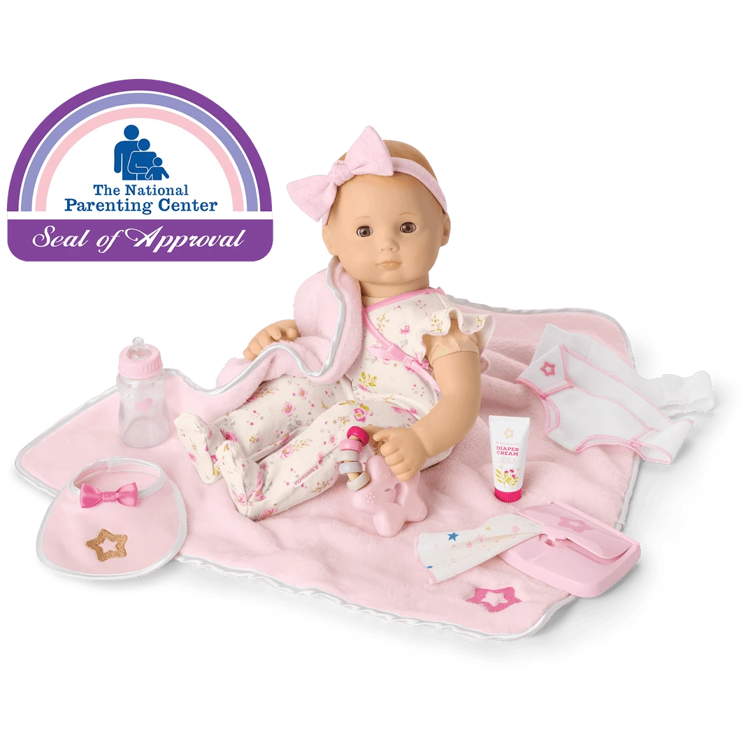 Get your little one ready for a full day of caring for Bitty Baby®—from changing Baby’s diaper to changing her outfit after feeding time to rocking her to sleep again. It includes: