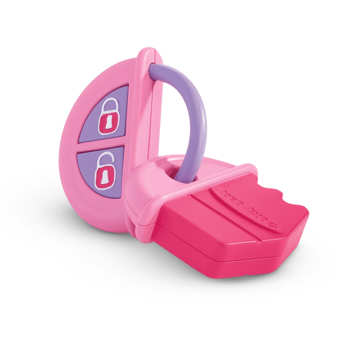 Colorful keys are fun for babies to play with—this key for Bitty Baby comes on a pink-and-purple ring with pretend buttons.
