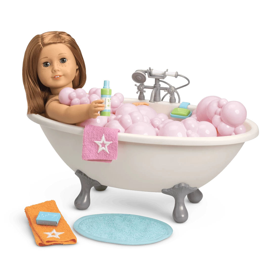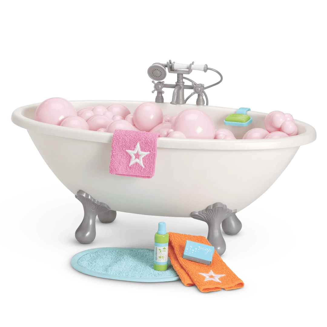 When it’s time to unwind, her doll can take a pretend soak in a bubbly bathtub. This set includes:
