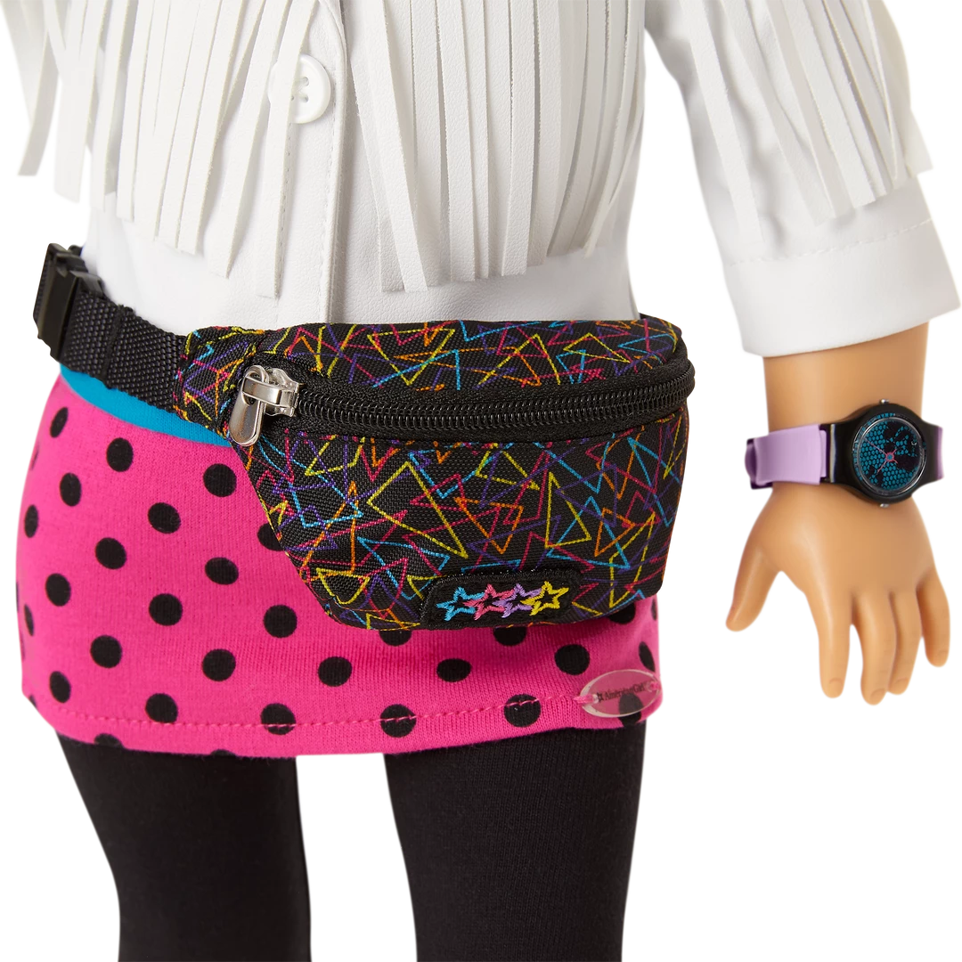 Courtney’s™ Belt Bag & Watch: A black belt bag with neon graphics and a zippered front pocket, plus a pretend watch