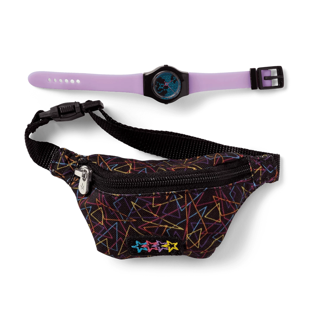 Courtney’s™ Belt Bag & Watch: a black belt bag with neon graphics and a zippered front pocket, plus a pretend watch