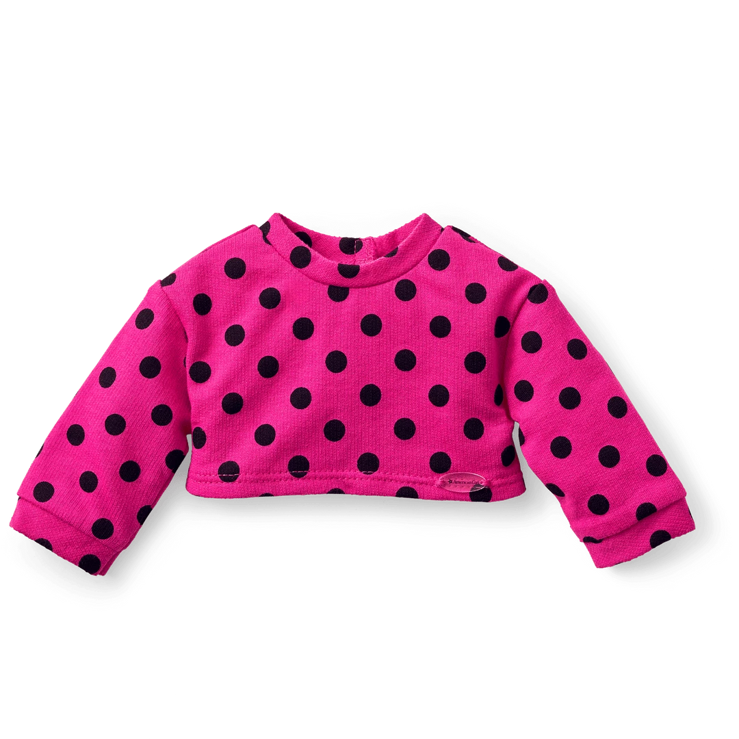 Courtney’s™ Cropped Pink Polka-Dot Top: A short hot-pink top with black polka-dots