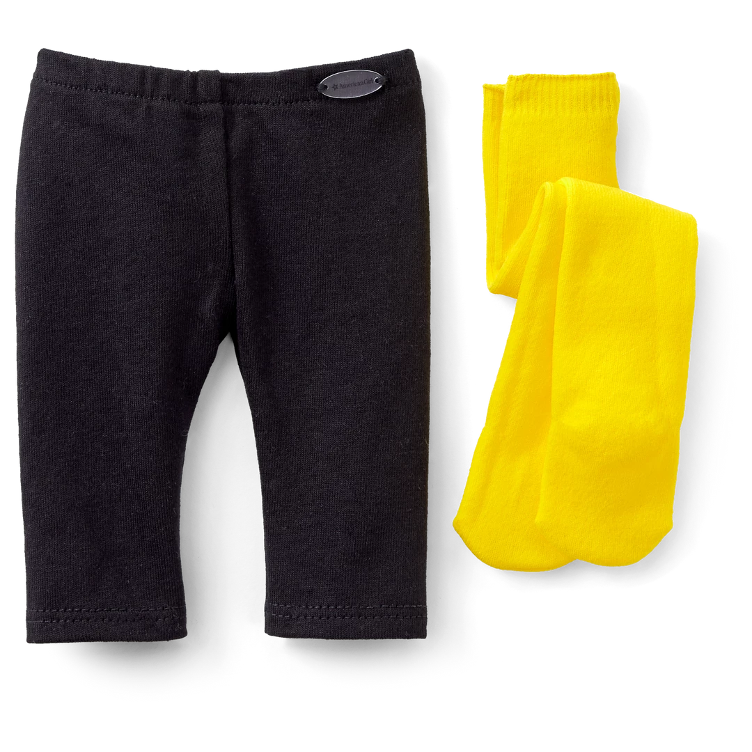 Courtney’s™ Tights & Leggings Set: A pair of yellow tights and mid-calf length black leggings
