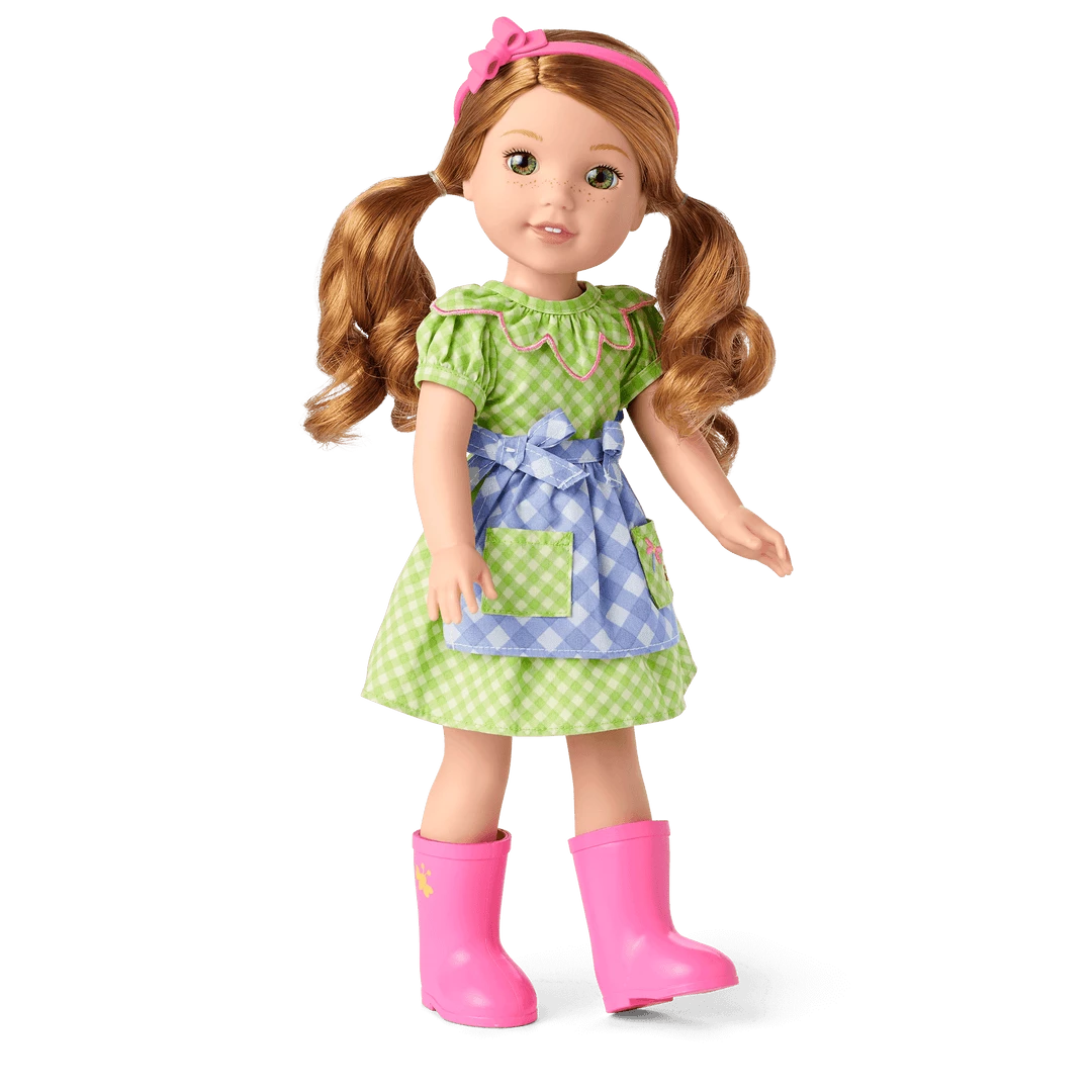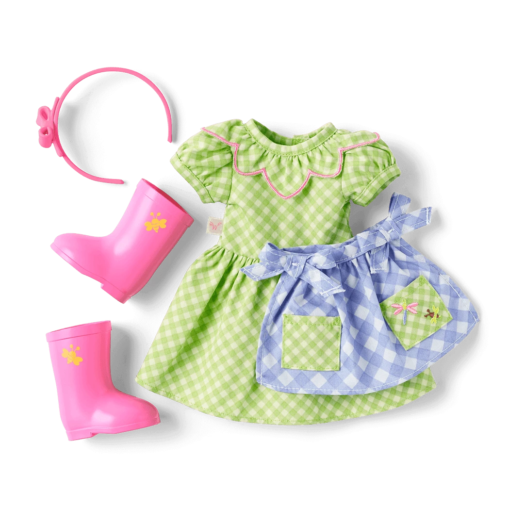 The WellieWishers are enjoying spring in their greenhouse. This outfit is perfect for planting vegetables and digging in the dirt. Includes: