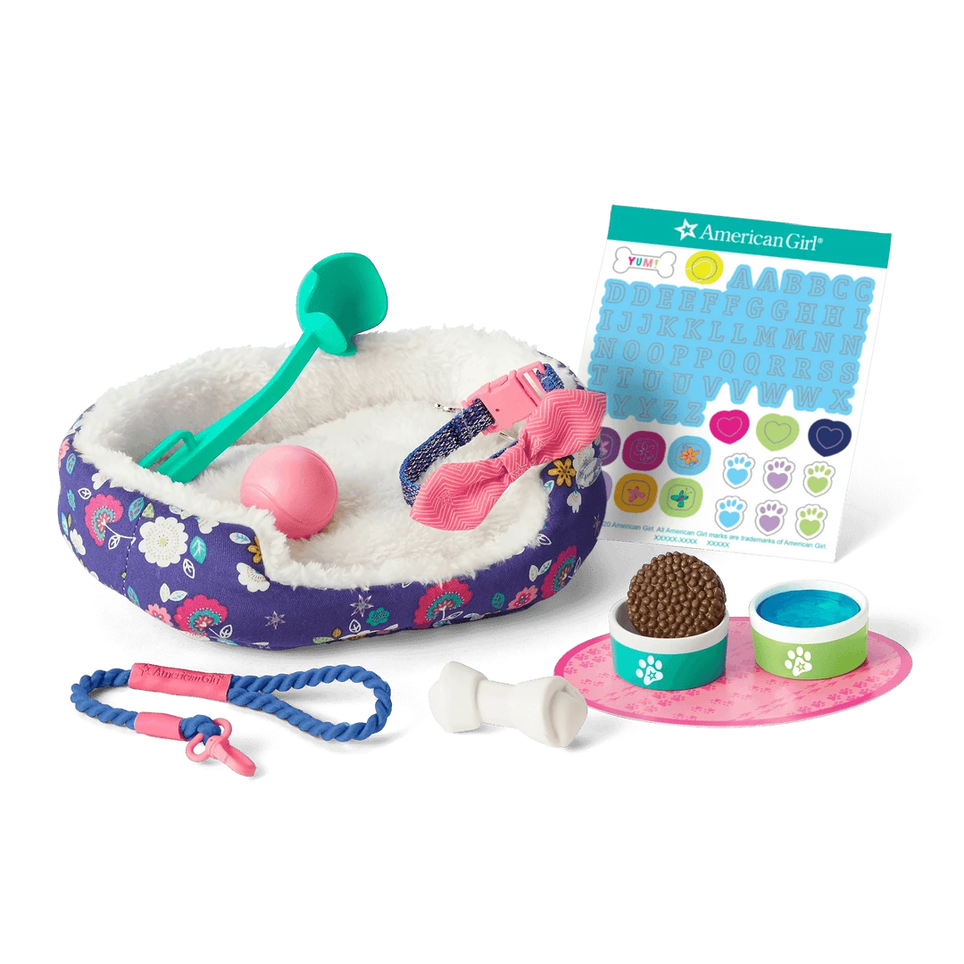 Dolls can make sure their favorite four-legged friend is well-fed and feels loved with this set that has everything needed to care for a dog. It includes: