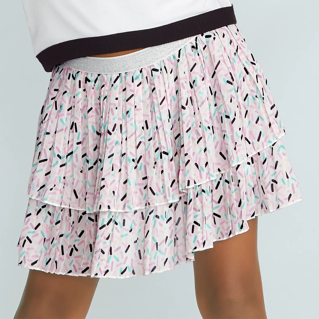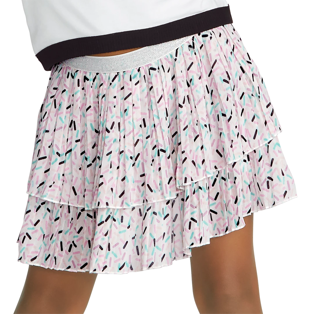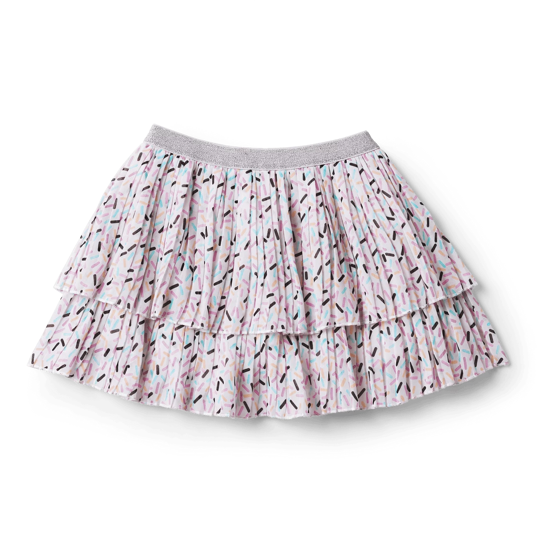 Just like the doll-sized version, this pleated skirt has two sprinkle-print tiers and a silver glitter elastic waistband. Part of the AG Fashion Show® Sweet Street Collection! Polyester/spandex. Imported. Print. Sizes XS-XL