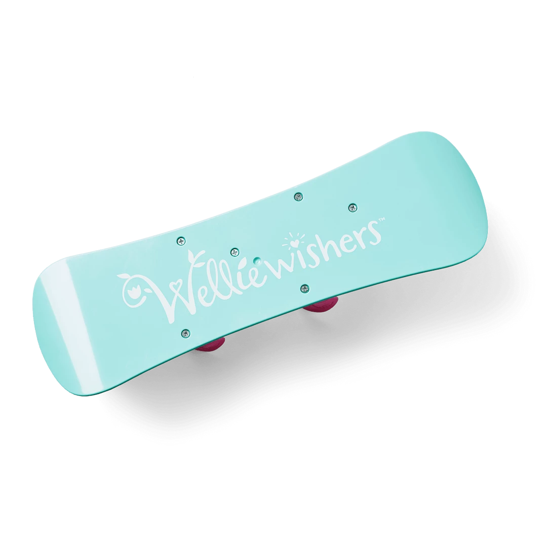 - A colorful mixed-print snowboard with the WellieWishers™ logo on the back, plus movable straps to buckle in her boots