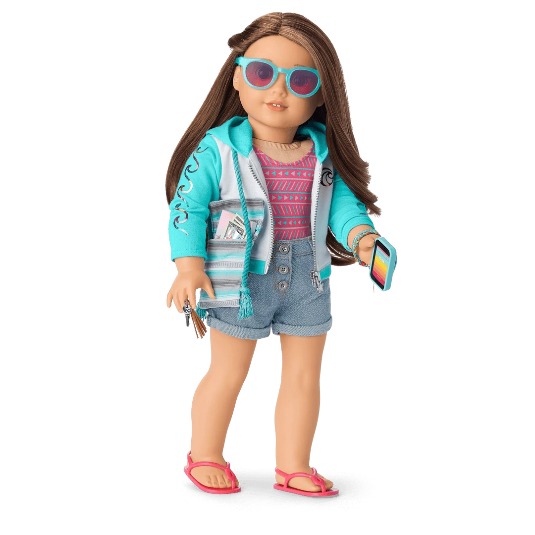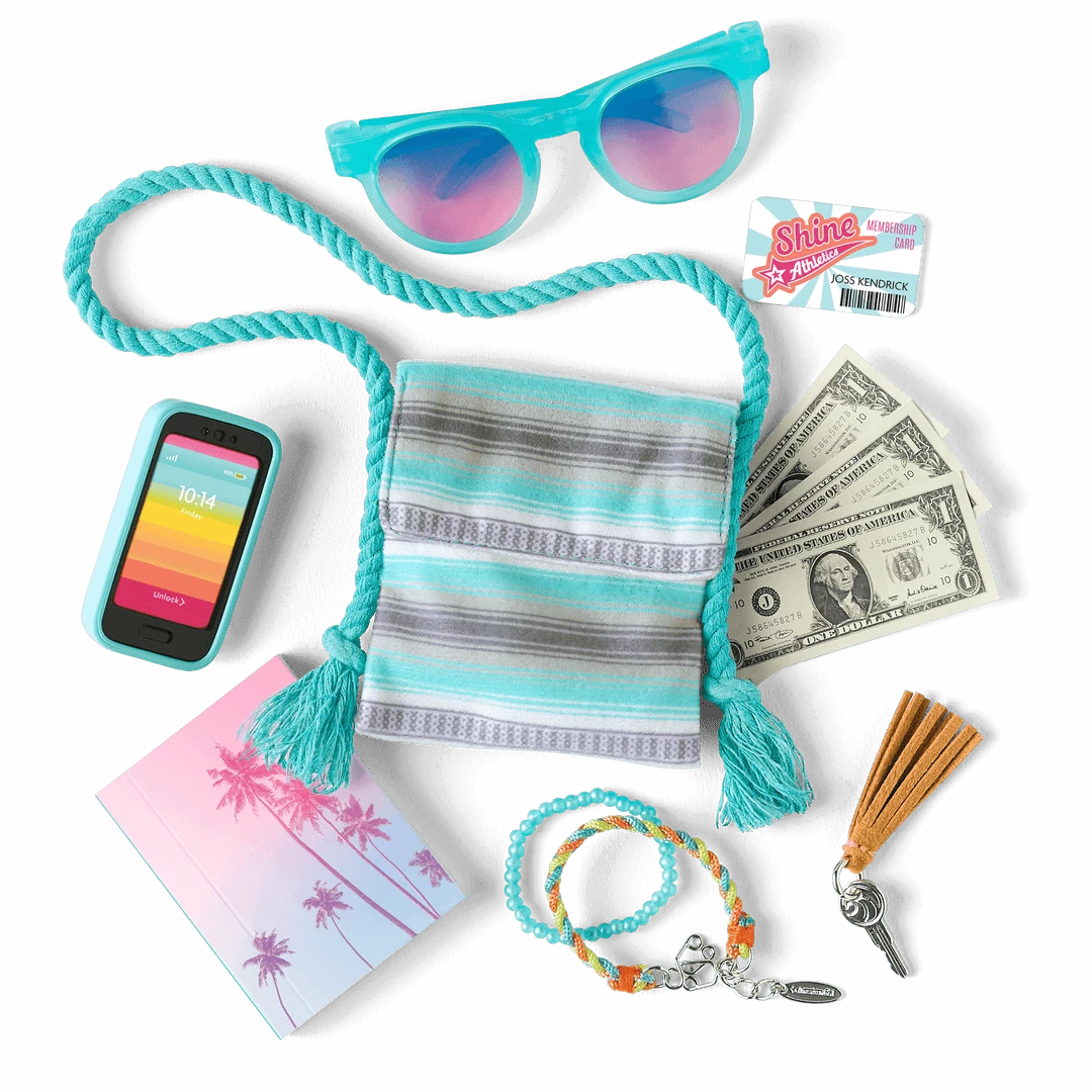 Joss is busy going back and forth between the beach and the cheer gym. She keeps her accessories with her so she’s ready for anything. Includes: