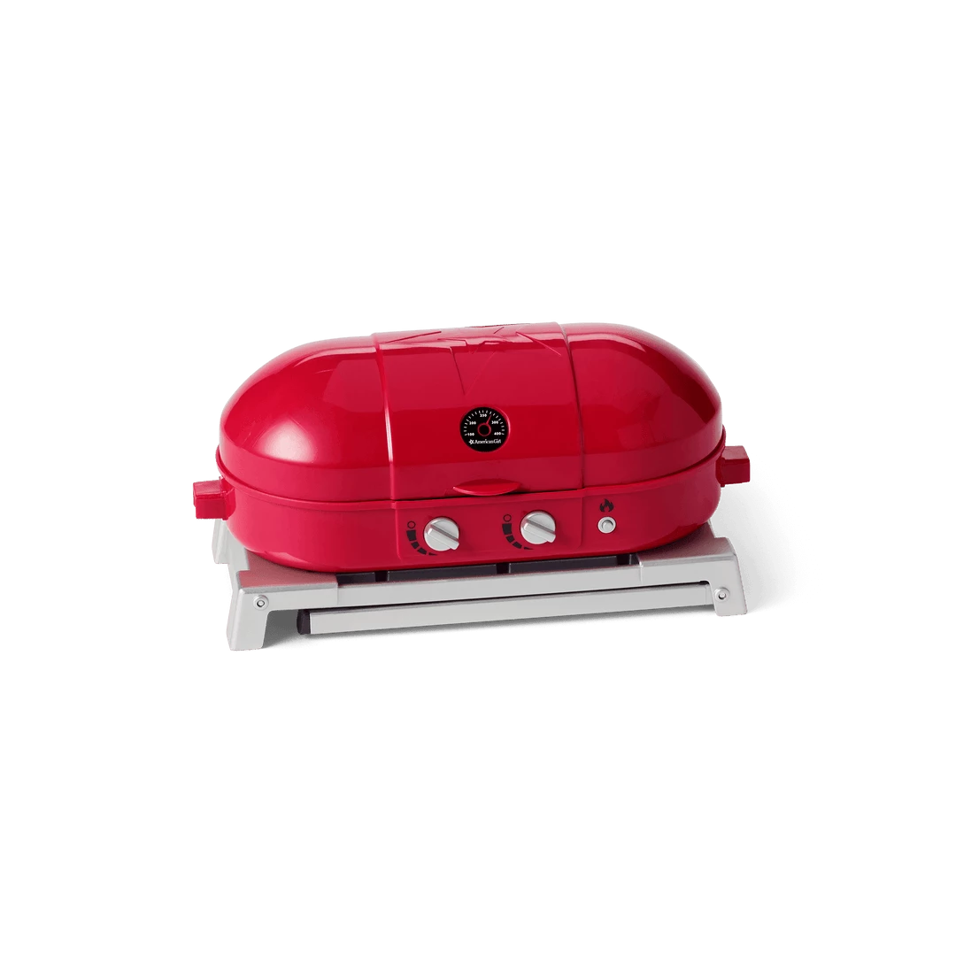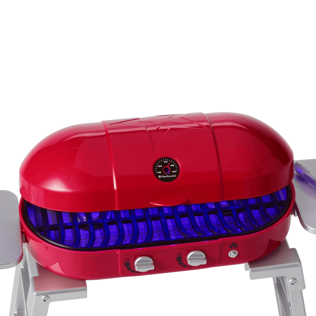 - A portable grill with color-change technology that “cooks” the food—they get grill marks after being exposed to the special lighting inside! It has legs that fold up and side tables that detach so it fits in the surf bus.