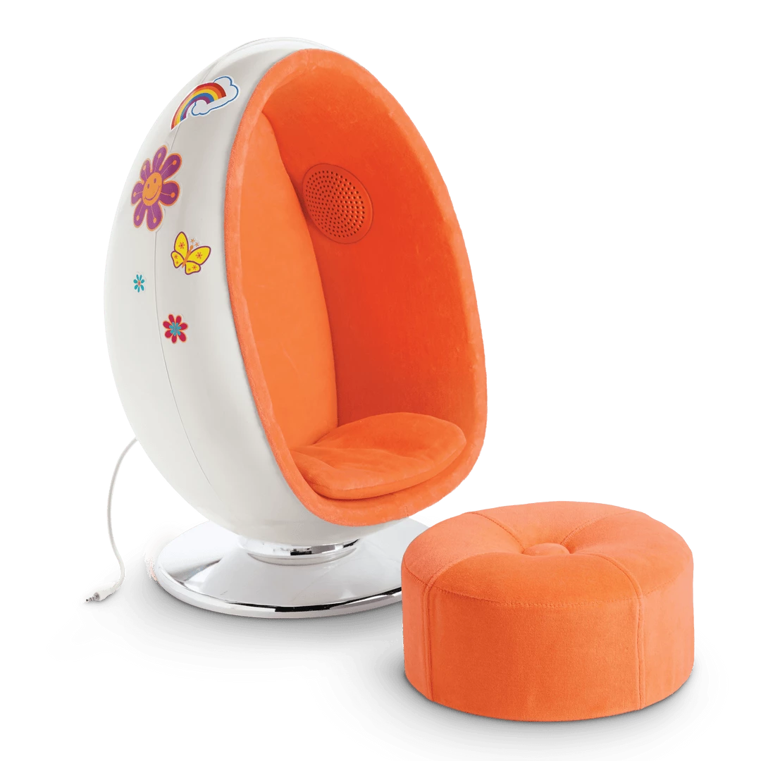 - A stereo egg chair with real working speakers and a 3.5mm audio cable for girls to attach to their own electronic music players