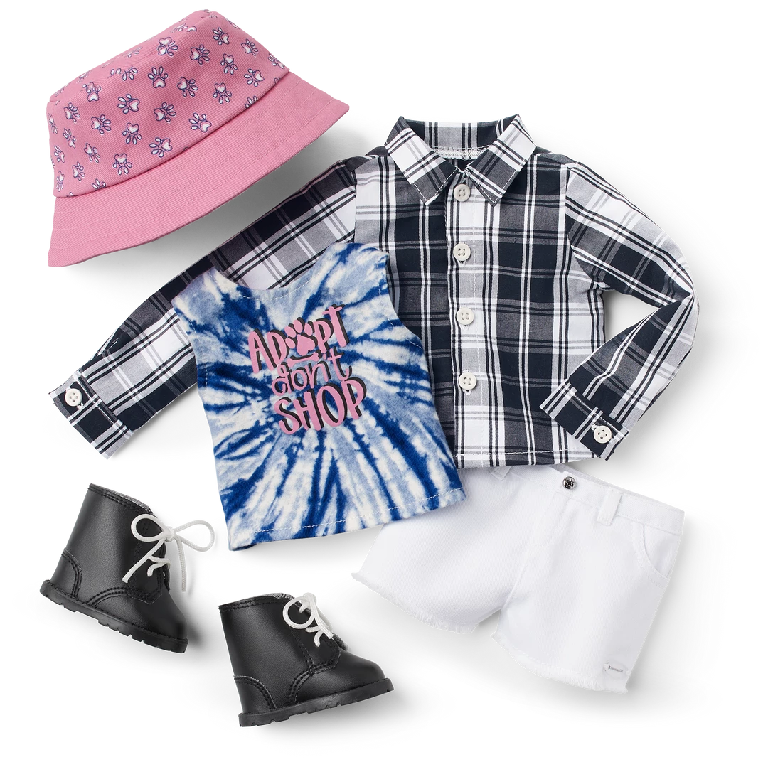 Kira wears this outfit to remind others about all the adorable adoptable animals out there looking for homes, like the kittens she rescued in her home state, Michigan. It includes: