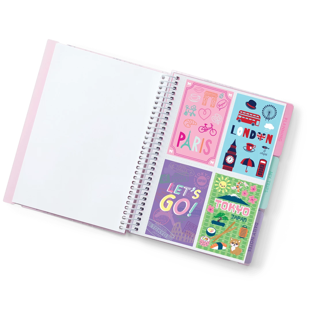 She can document all the details of her journeys and jaunts in this spiral-bound travel journal. It has an elastic closure, a pocket to hold souvenirs, and stickers to decorate the cover and inside pages.