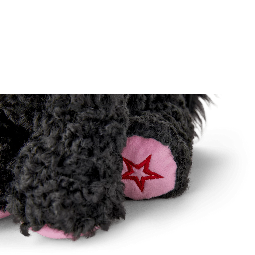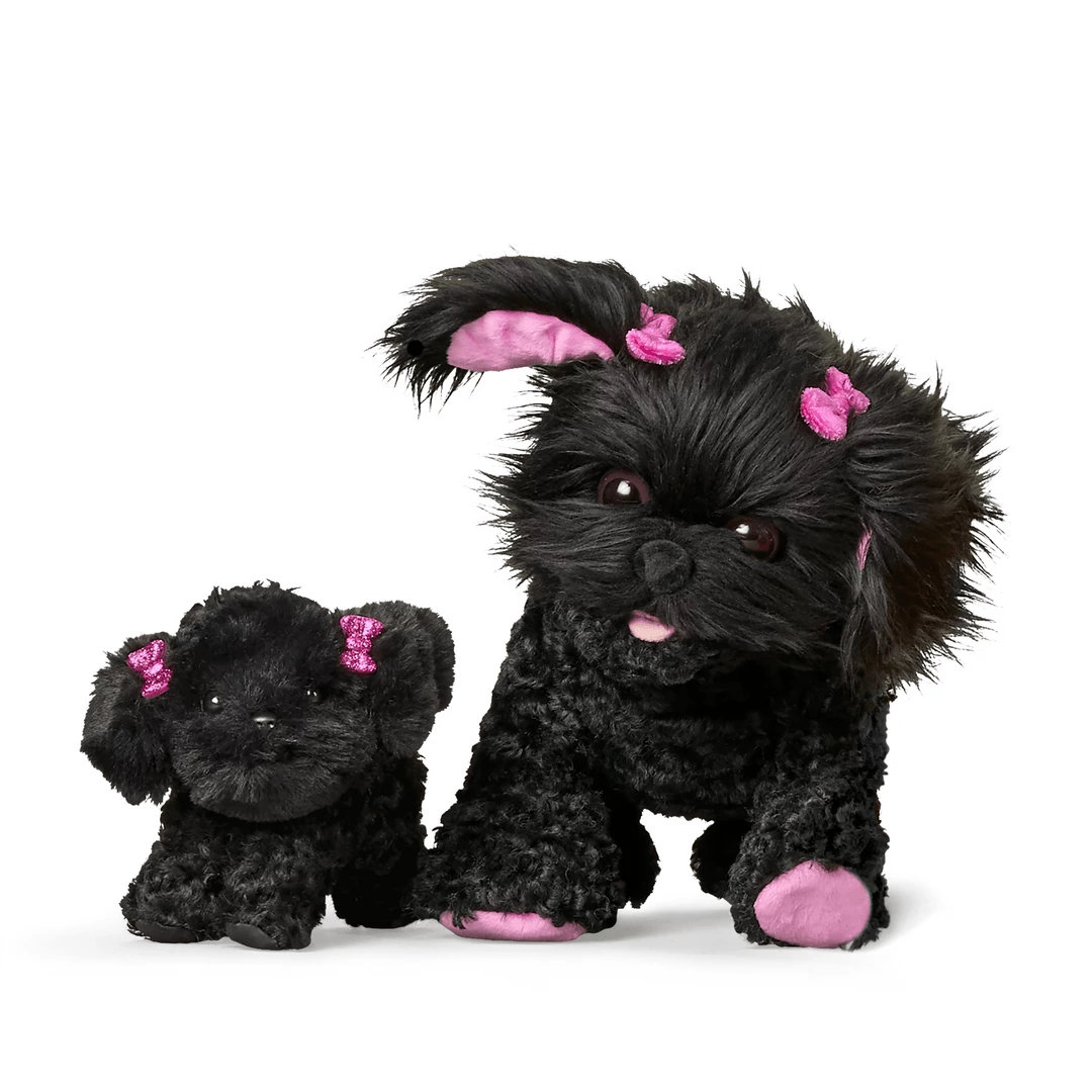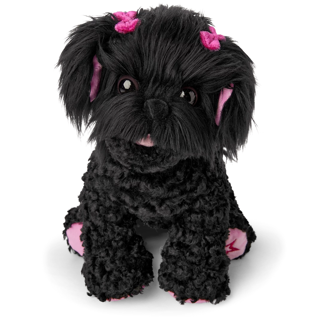 Shi-Poo Sweetie Dog Plush for Girls: A girl-sized soft and cuddly Shi-Poo dog with movable limbs so she can sit or lie down. Girls will love her velvety ear bows, open mouth with her tongue showing, and the embroidered American Girl® star on her back foot. Everyone will love that she’s made with more sustainable materials.