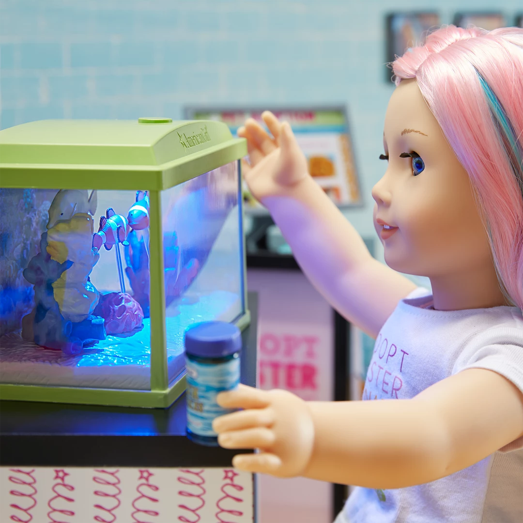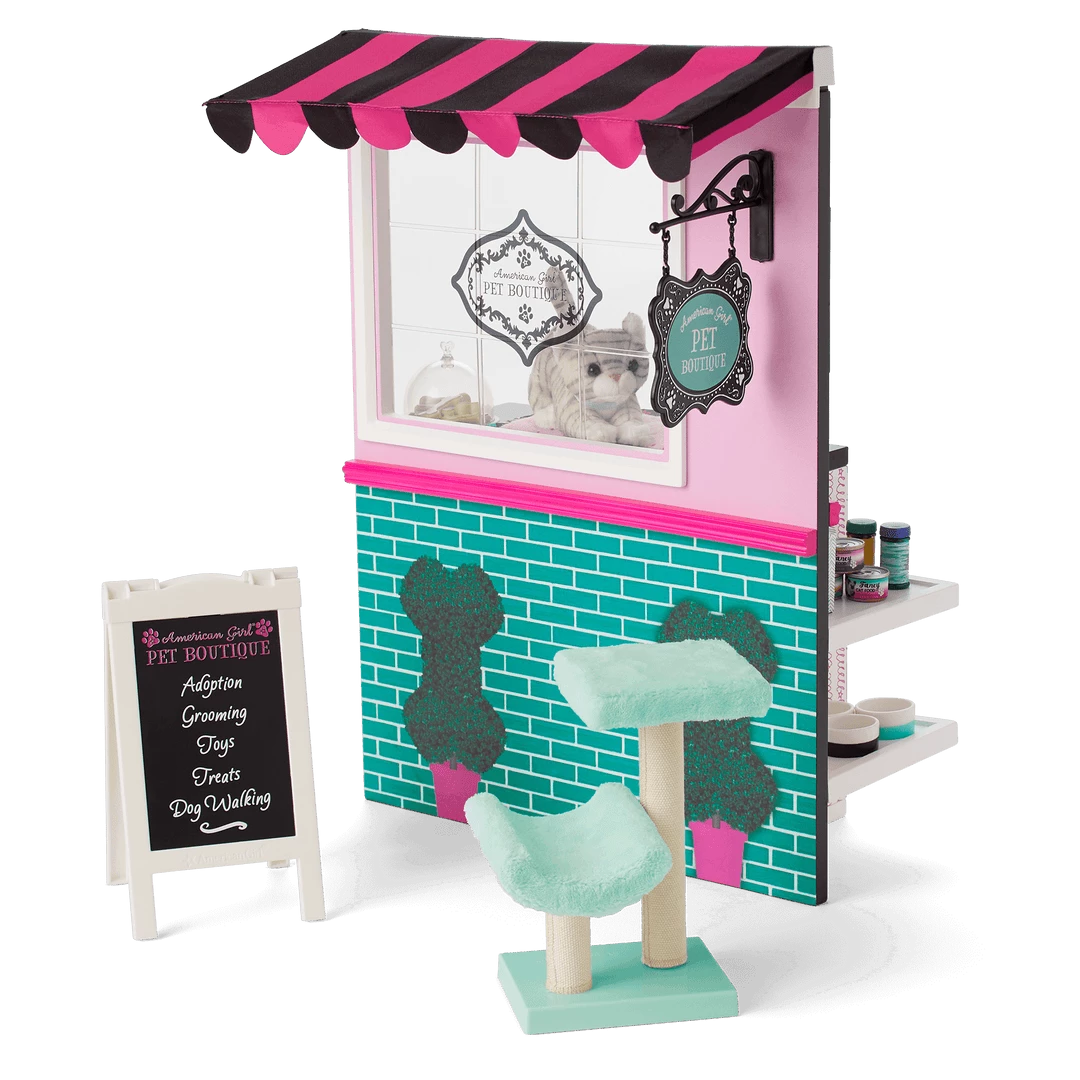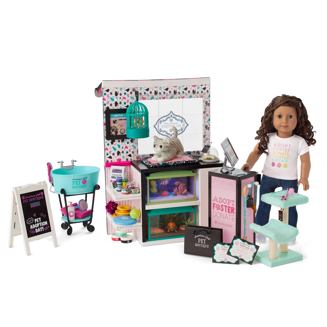 This sweet pet boutique is stocked with everything a doll needs to take care of furry, feathered, and finned friends!