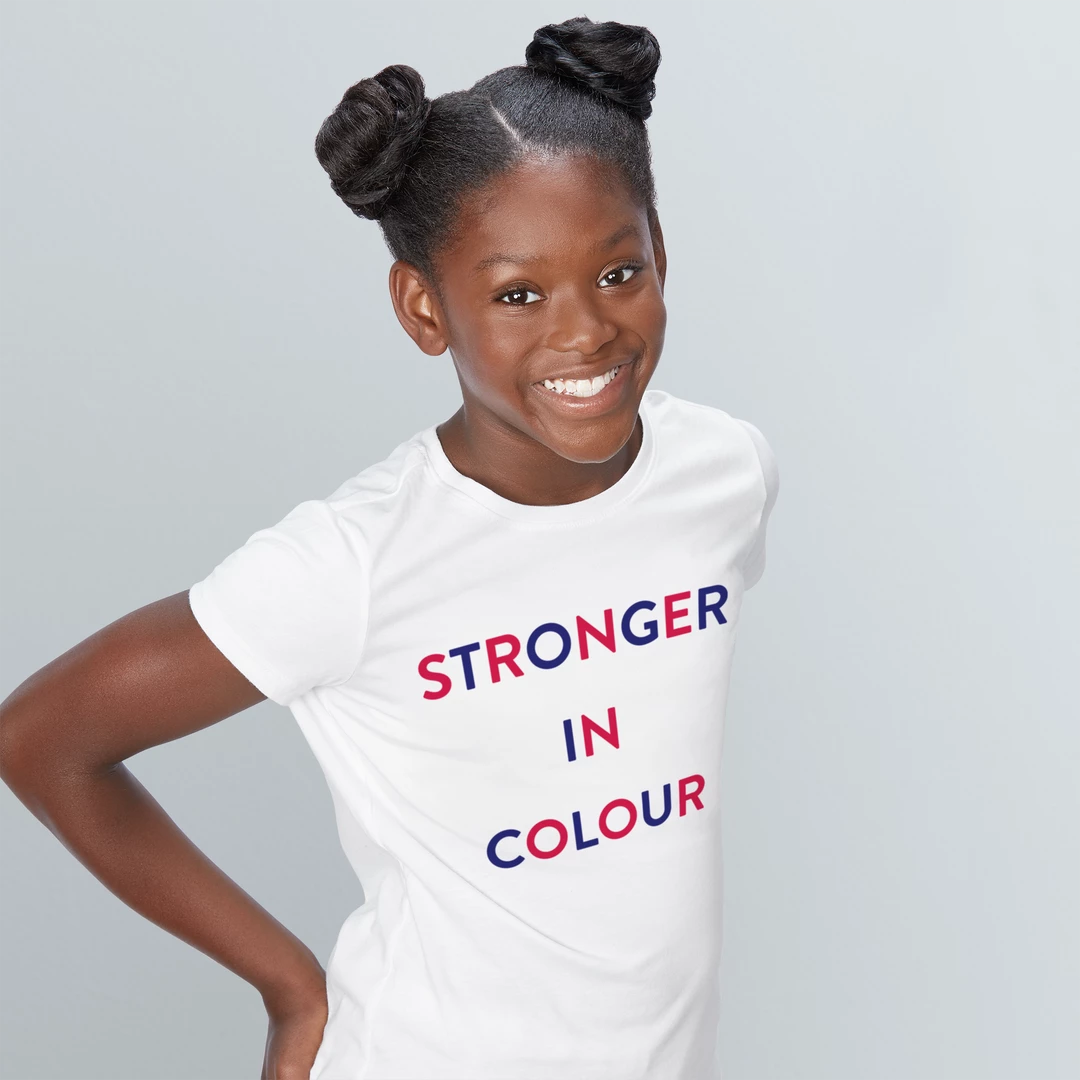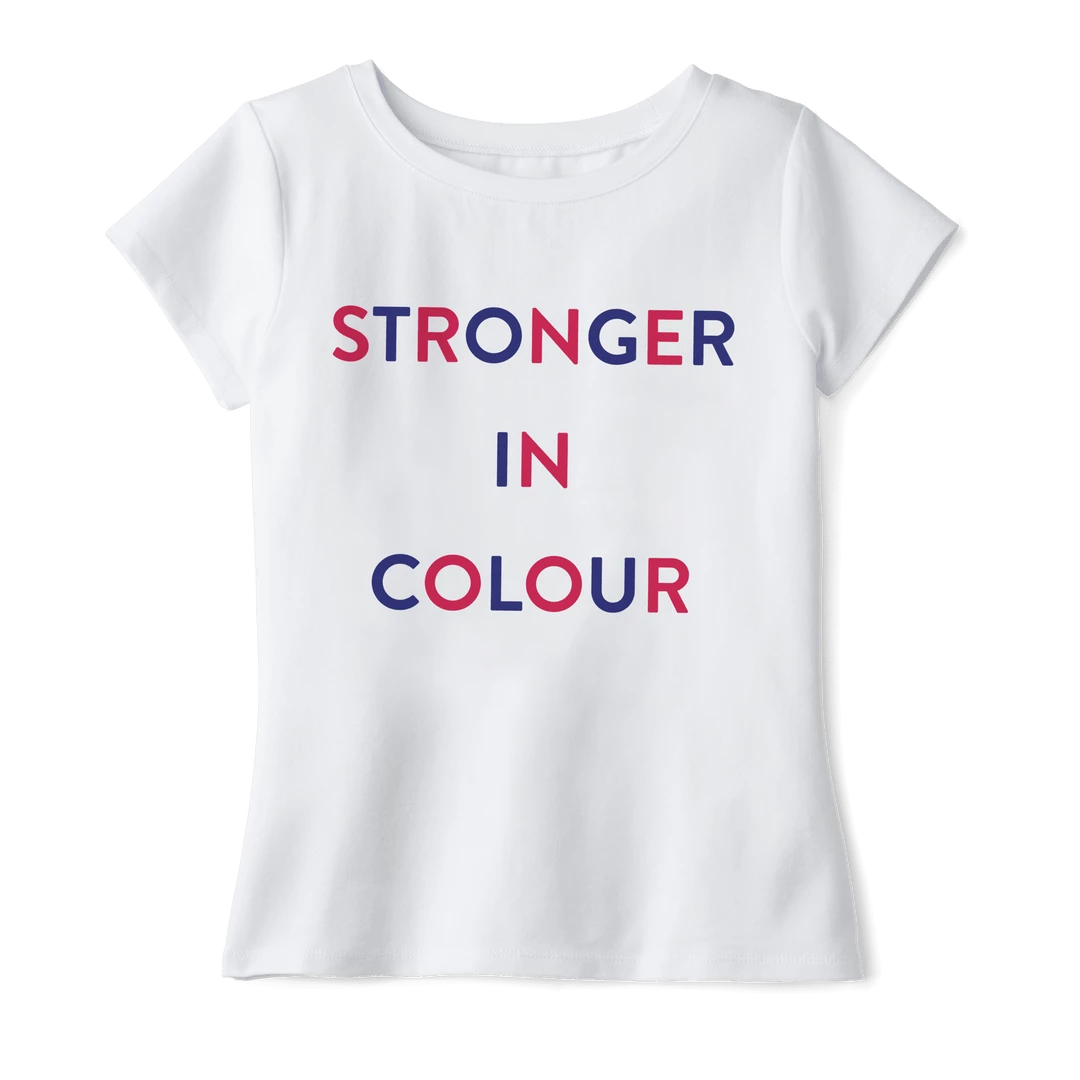 Designer Prabal Gurung and American Girl are coming together to showcase what it means to be an American girl today—and celebrate all the limitless possibilities. The short-sleeved white tee with a “Stronger in colour” graphic on the front matches the doll version. Polyester. Imported. Multi. XS-XL