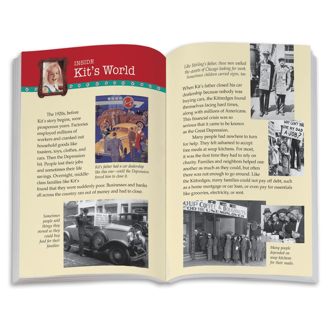 Kit Kittredge has a nose for news—but she never dreamed that the news stories about the hard times of the Depression would become her own story. First Mother’s bothersome friends move in with the Kittredges. Then Dad loses his business, and Kit’s family could lose their house! Things look hopeless, but a clever idea might let her family keep their home. Can Kit help pull it off? The first book in Kit’s stories is richly illustrated in full color and includes a “Looking Back” historical section about Kit’s world in 1934. 128 pages. Paperback. Author: Valerie Tripp.