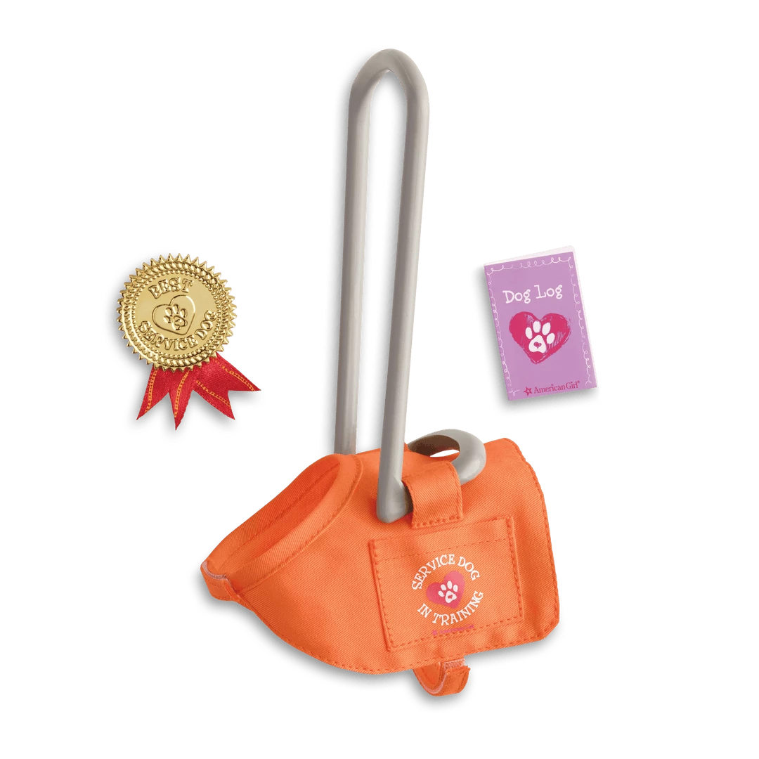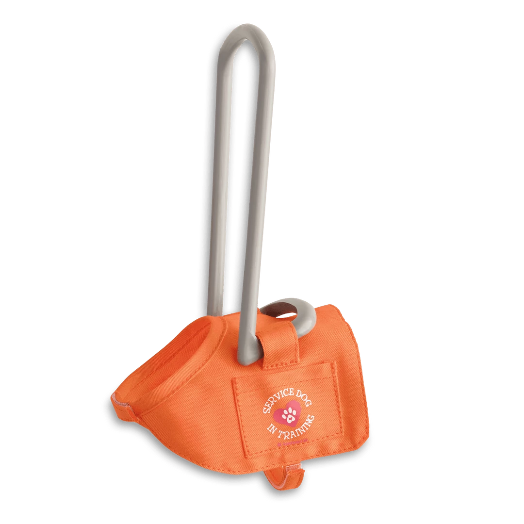 - A bright-orange service-dog vest with a handle that dolls can really hold