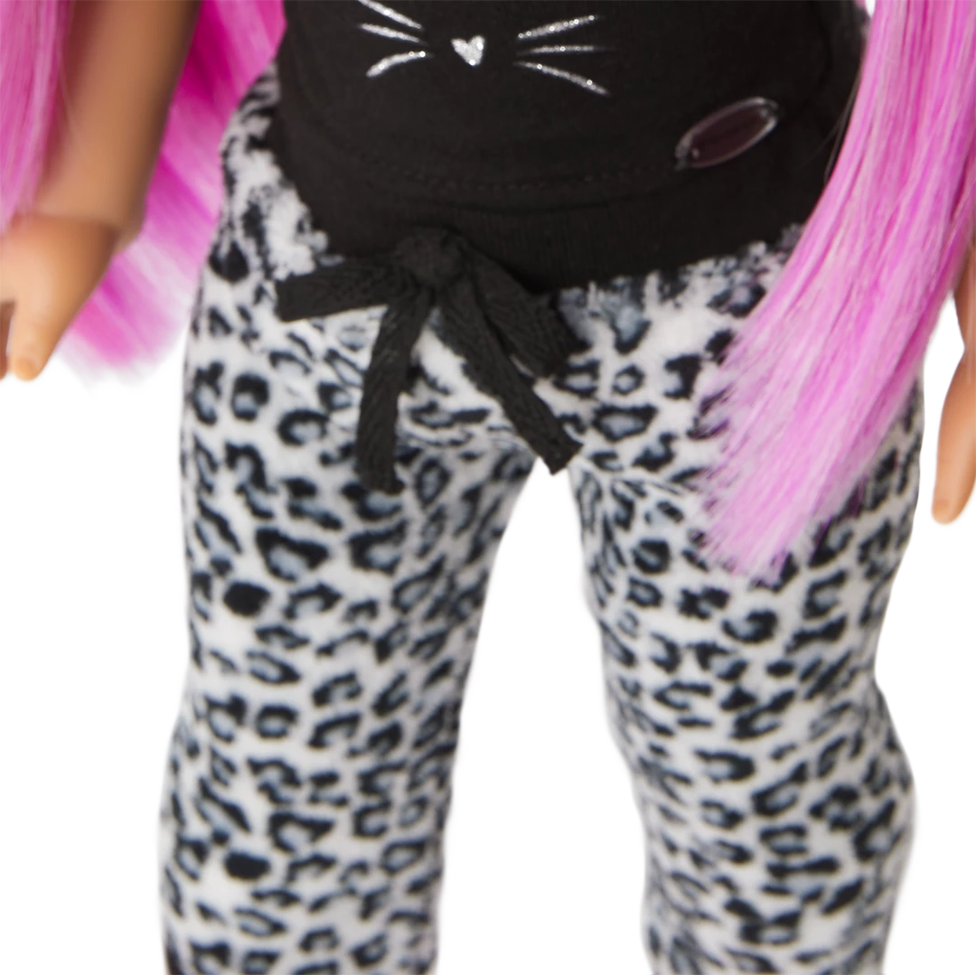These furry snow-leopard-print joggers can be paired with a hoodie or tank for spot-on style! They have a black knit waistband and ankle cuffs, plus a cute bow at the front of the waistband. Part of the AG Fashion Show® Pawsitively Purrfect Collection.