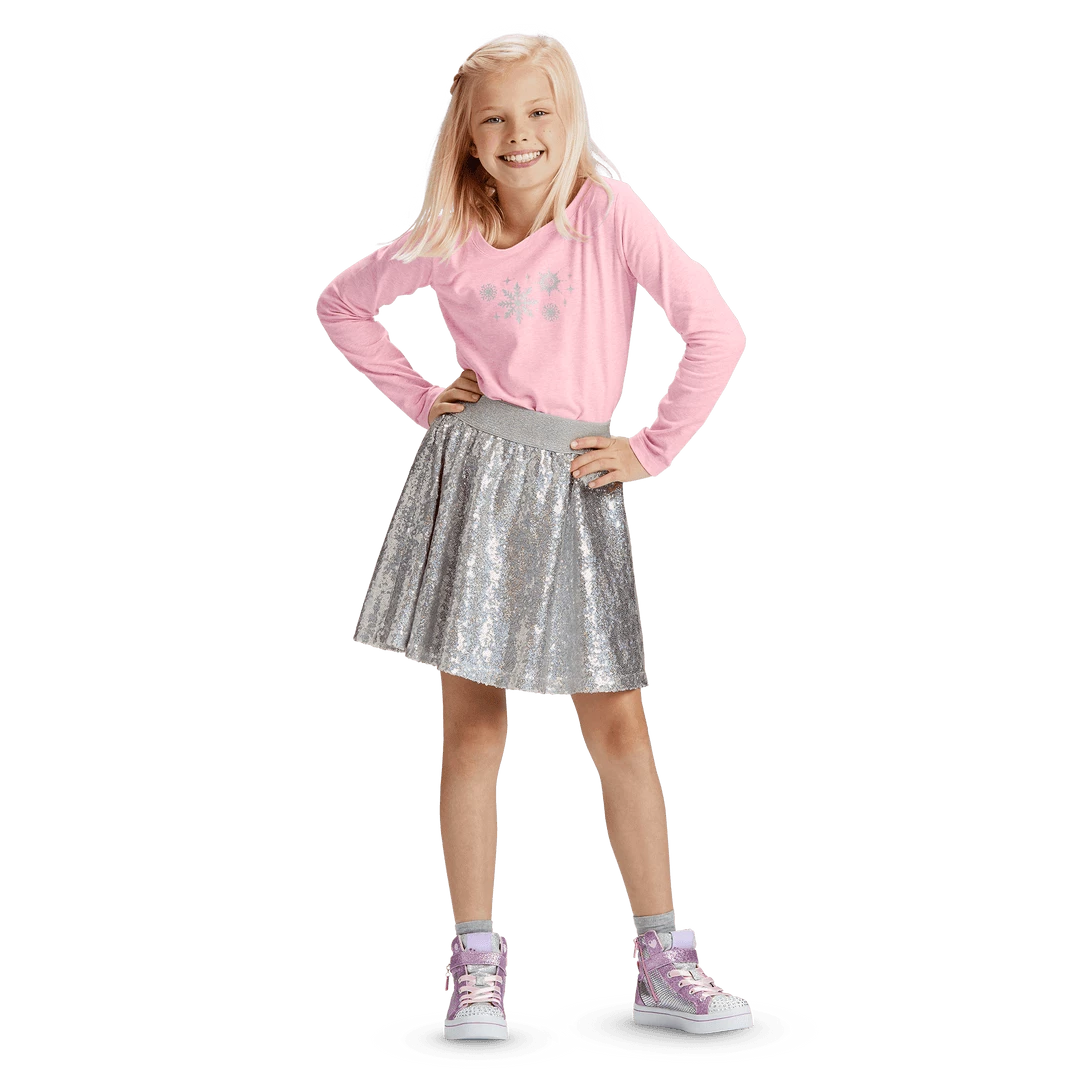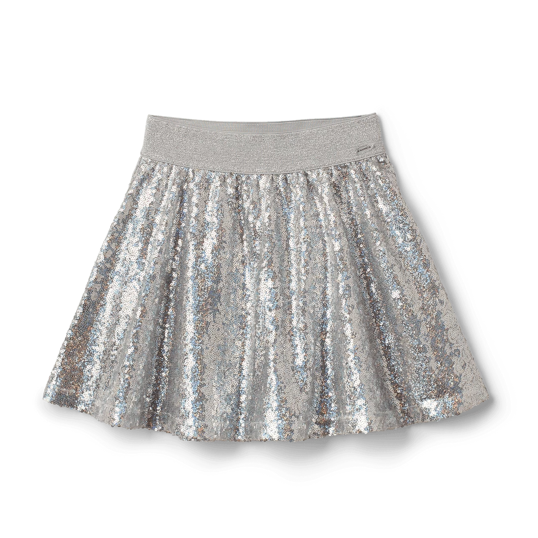 Silver Sparkle Skirt for Girls: A sparkly skirt that’s covered in silver sequins and has an elastic waist for comfort. Polyester. Imported. Silver. Sizes XS-L