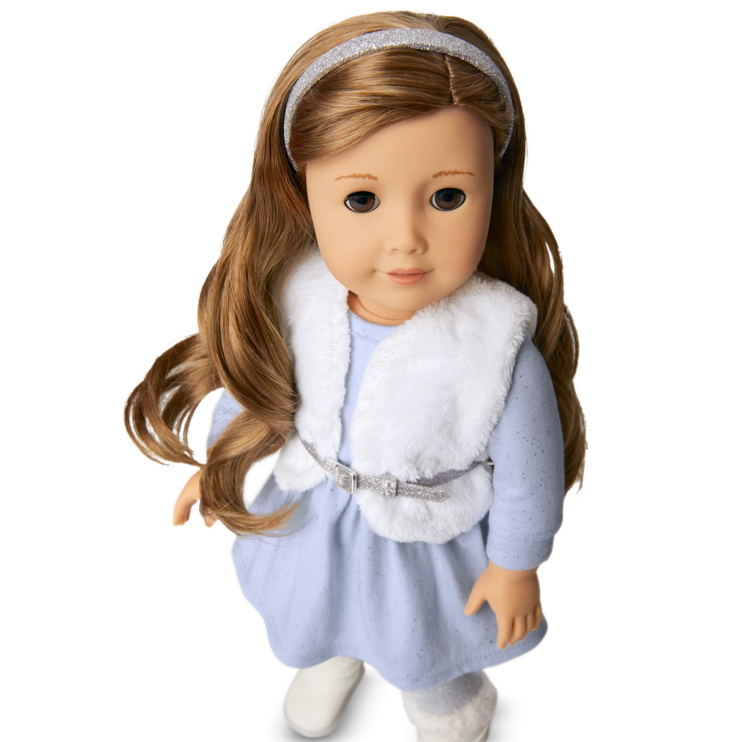 - A white faux-fur vest made even more fancy with a glittery silver belt