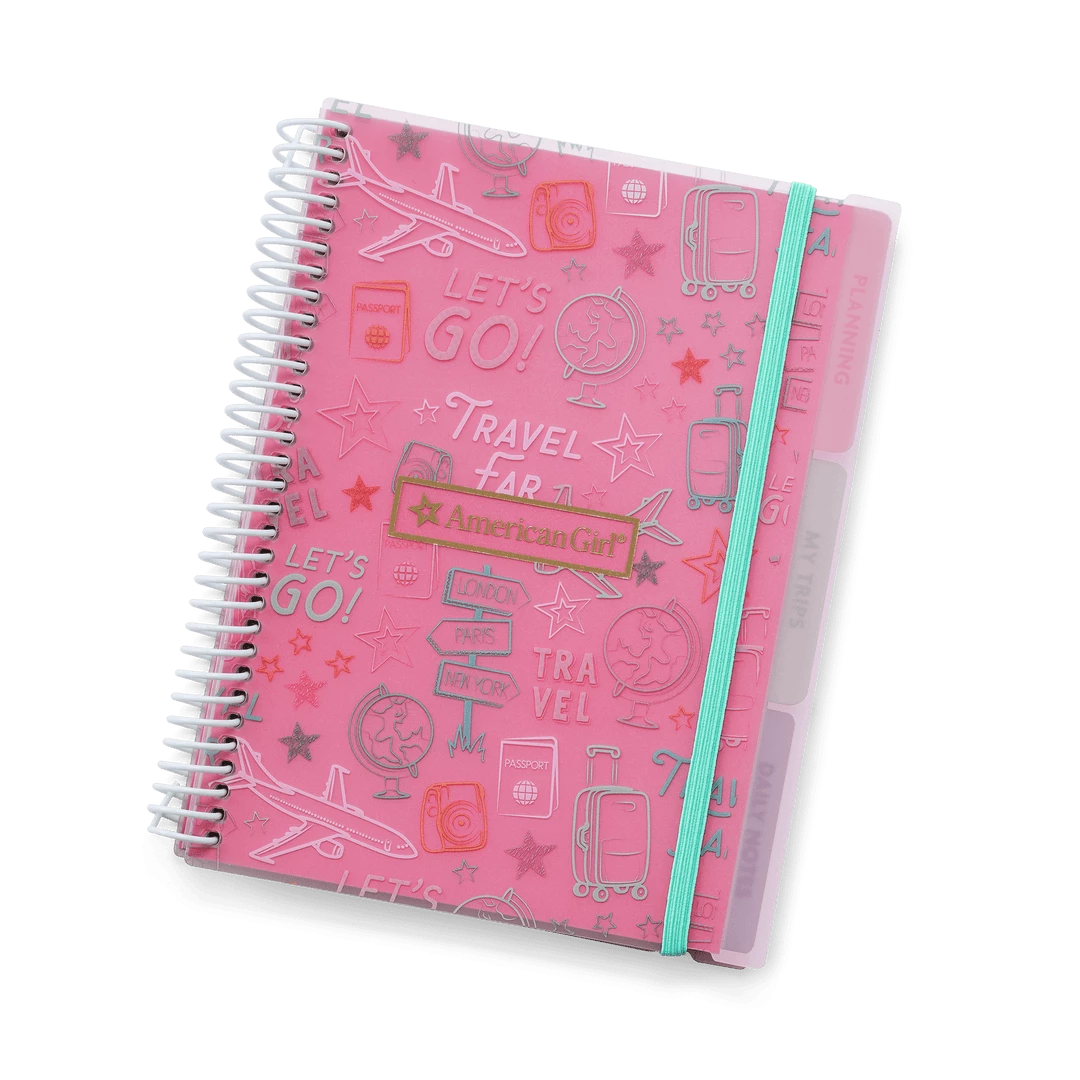 Love to Travel Journal for Girls: A spiral-bound travel journal with an elastic closure, a pocket to hold souvenirs, and stickers.