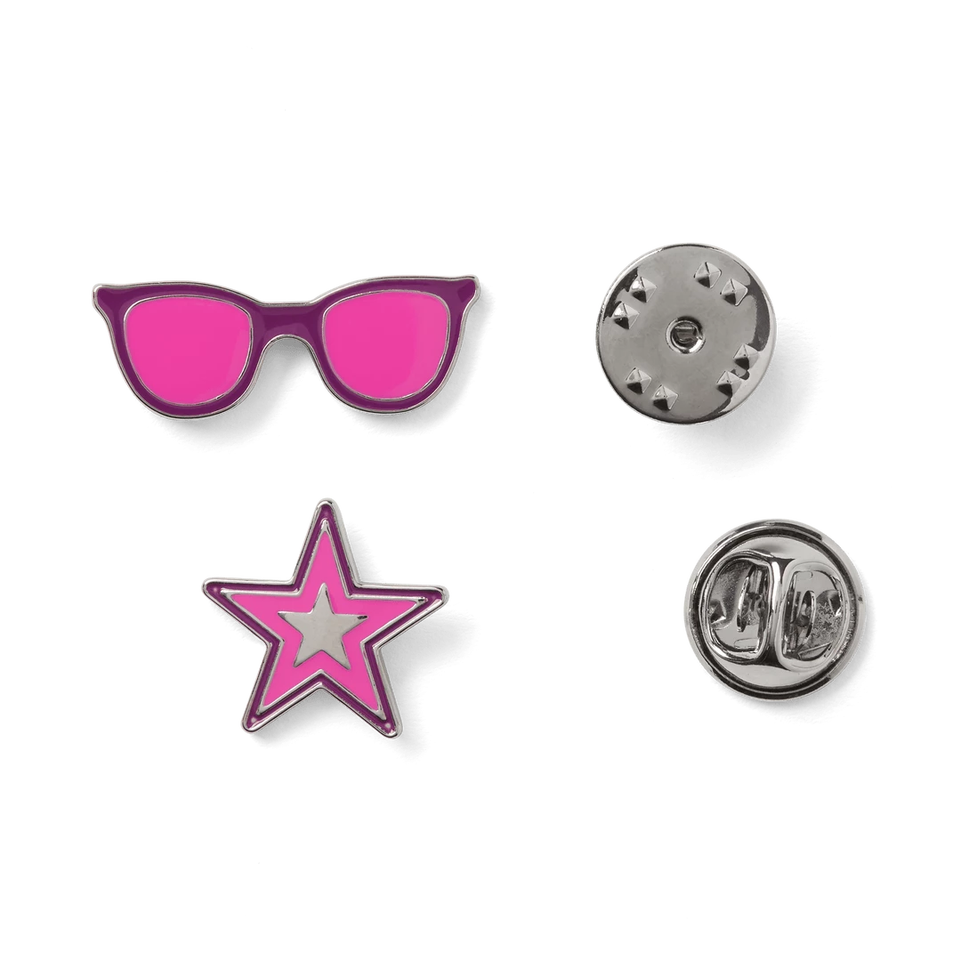 Pin 2-Pack for Girls: Two pins she can use to express herself on her jacket or backpack: a pair of pink sunglasses and an American Girl star.